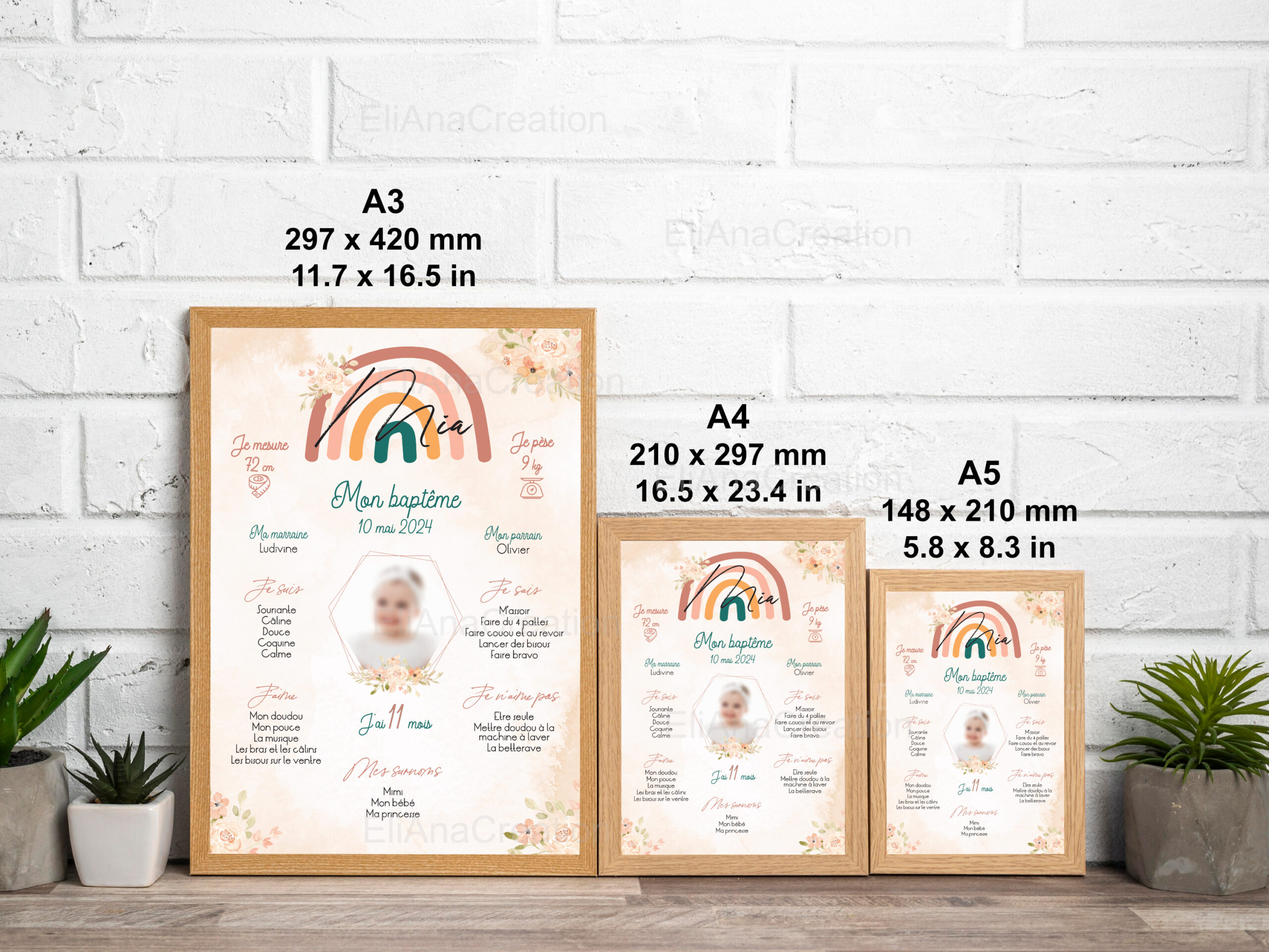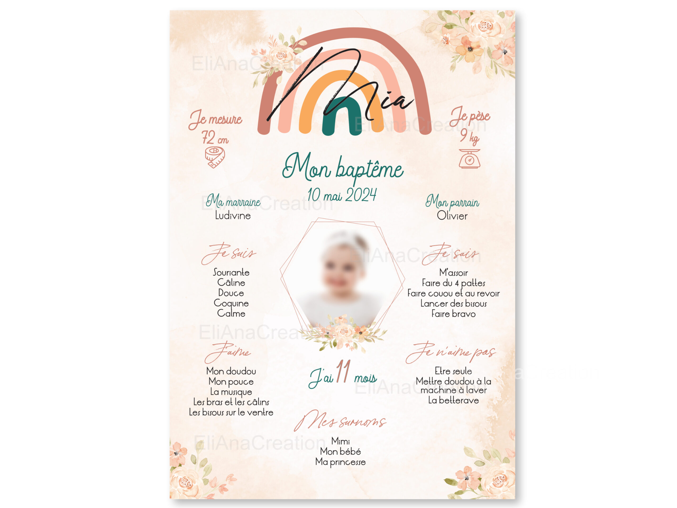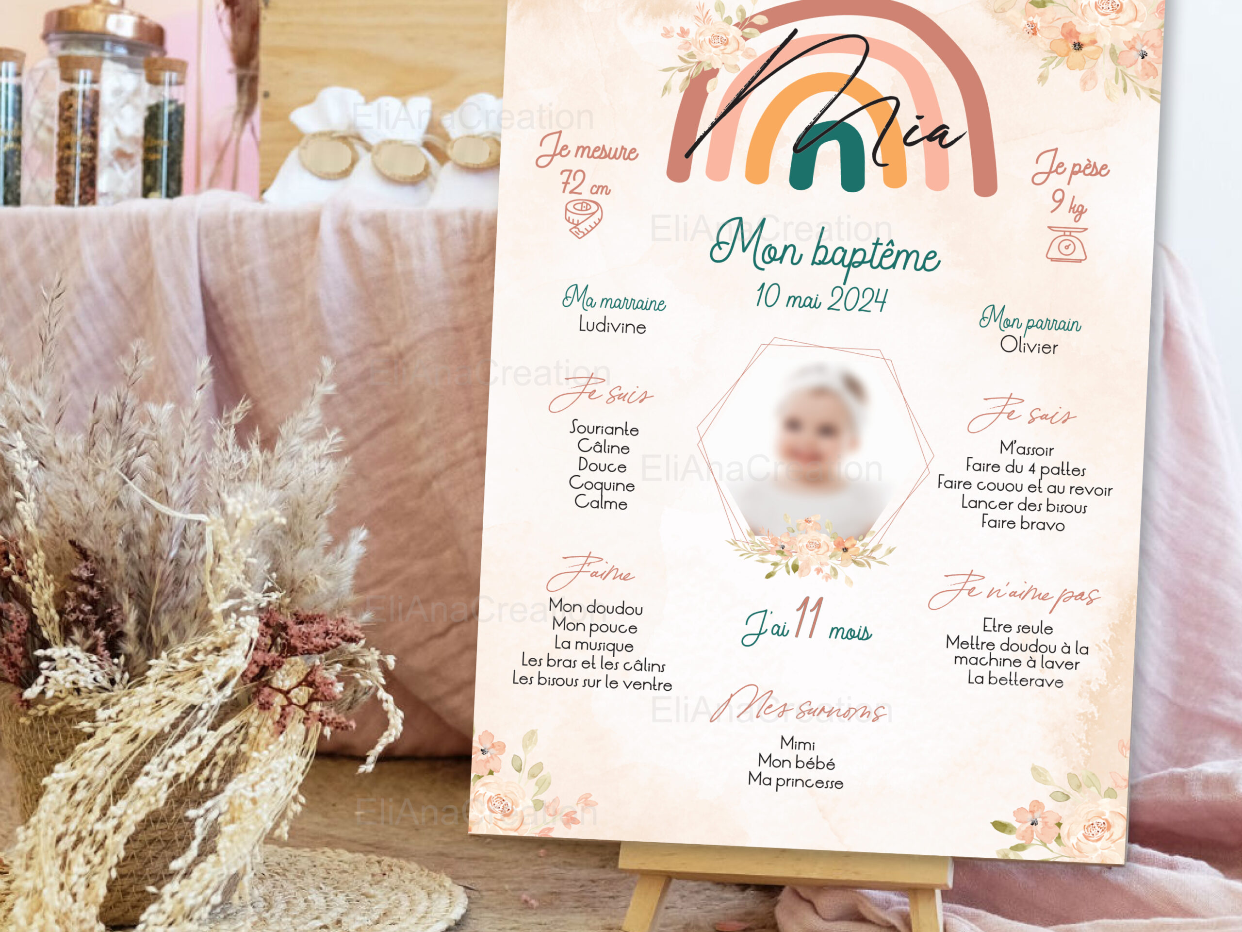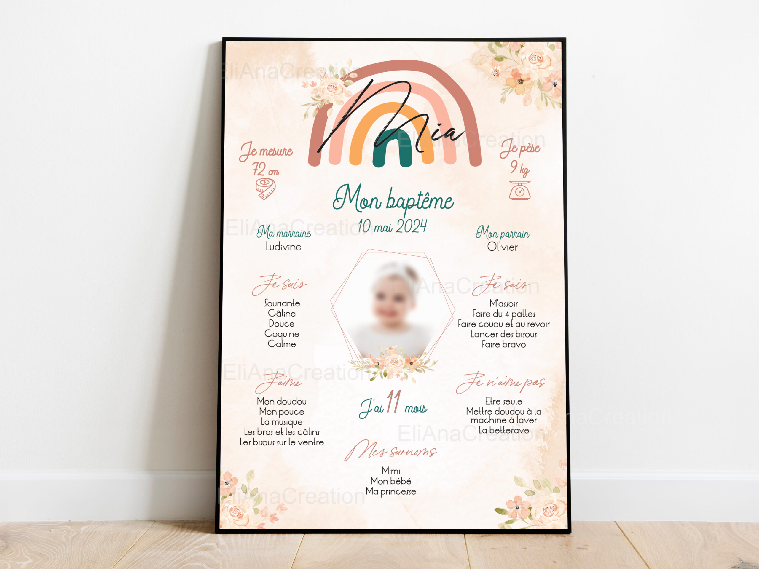Affiche Baptême Personnalisée – Thème Arc-en-Ciel