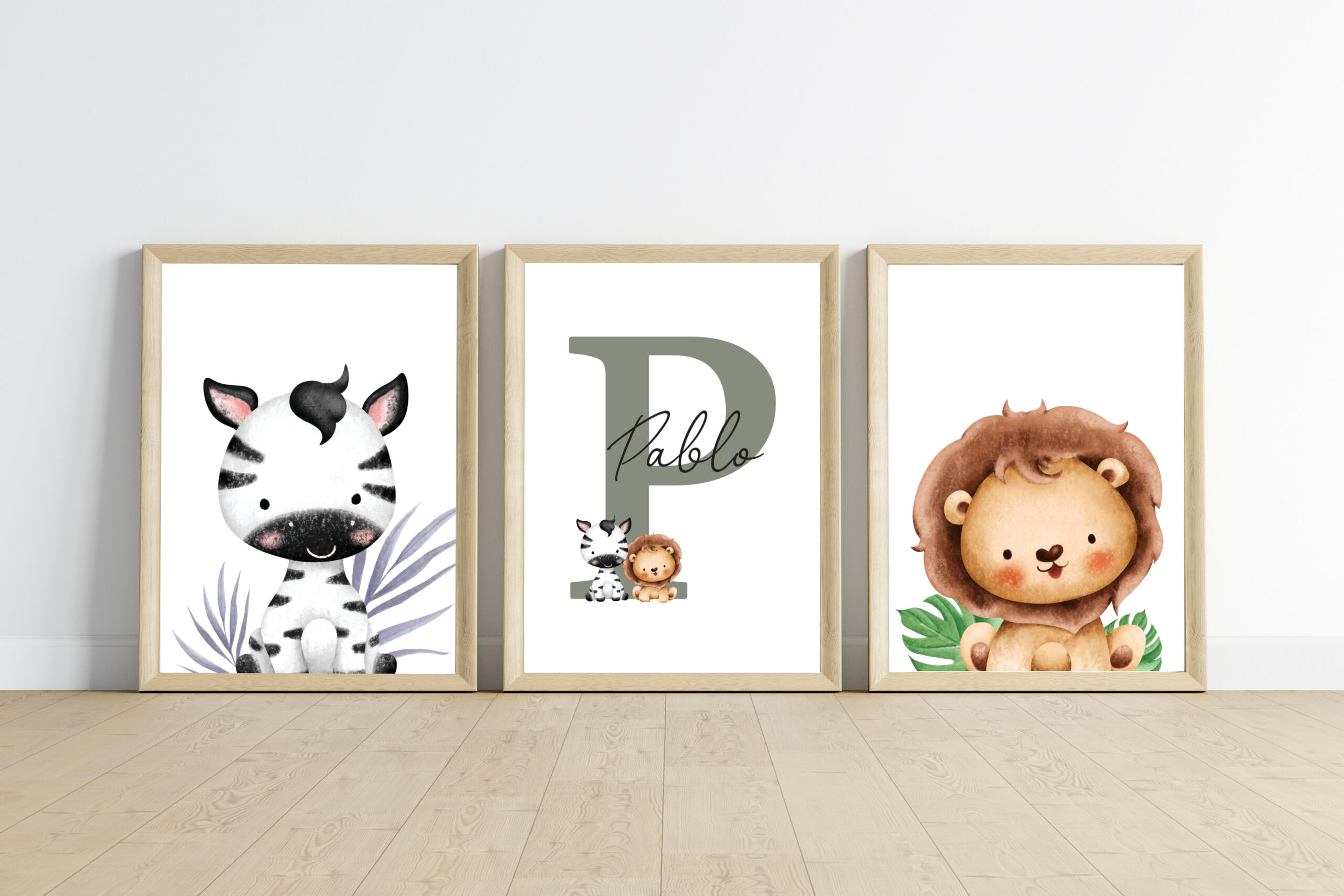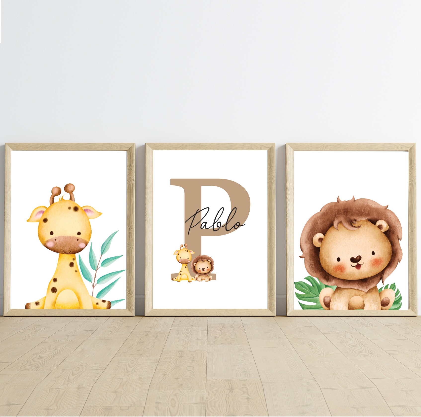• 3 affiches animal sans prénom : qui correspond à 3 affiches animal uniquement qui ne seront pas personnalisées avec le prénom.