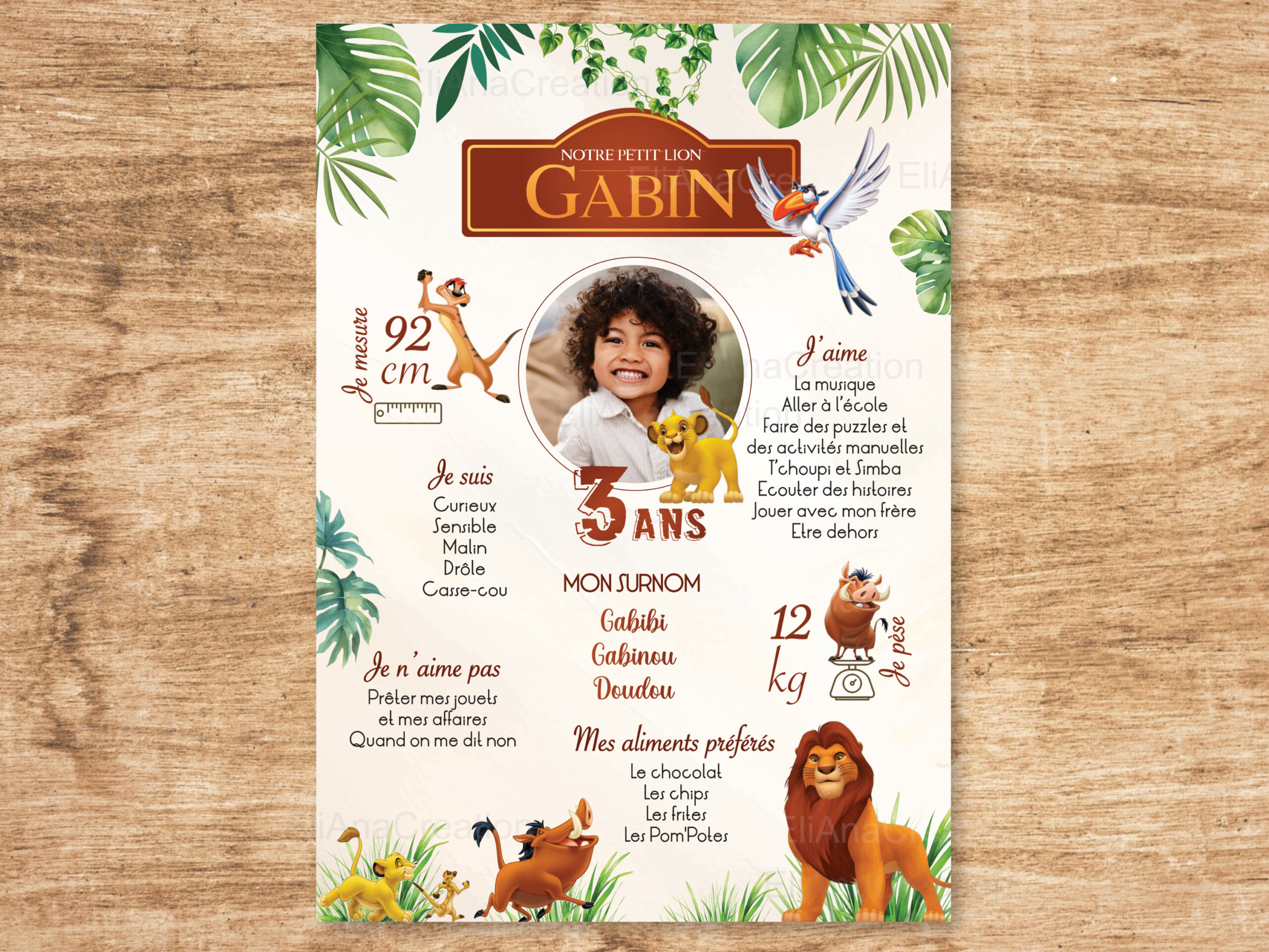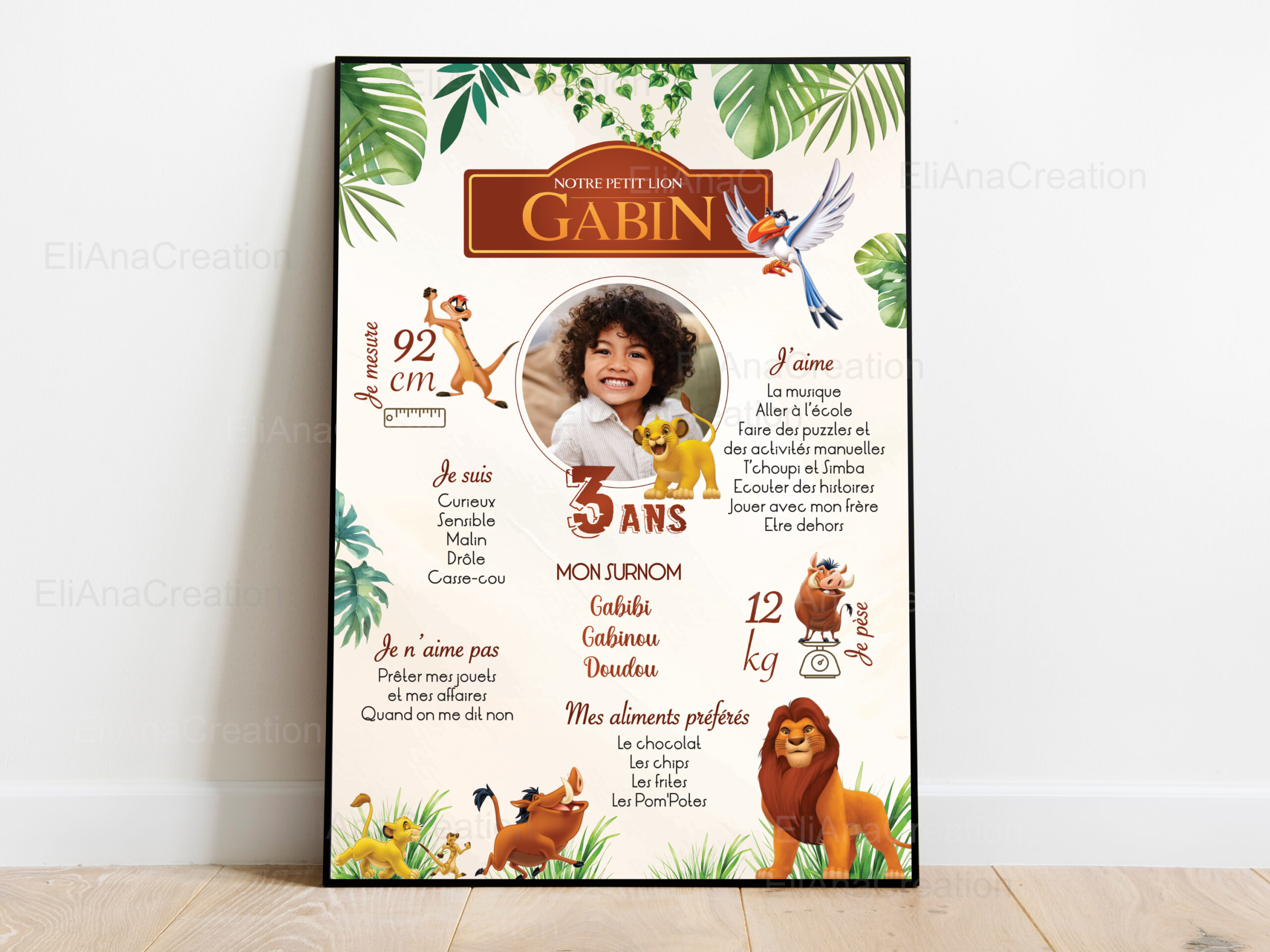 | A3 (29,7 × 42 cm) ou 30×40 cm | Encadrer ou poser sur un grand chevalet pour l’événement, parfait pour décorer la chambre de votre enfant par la suite |