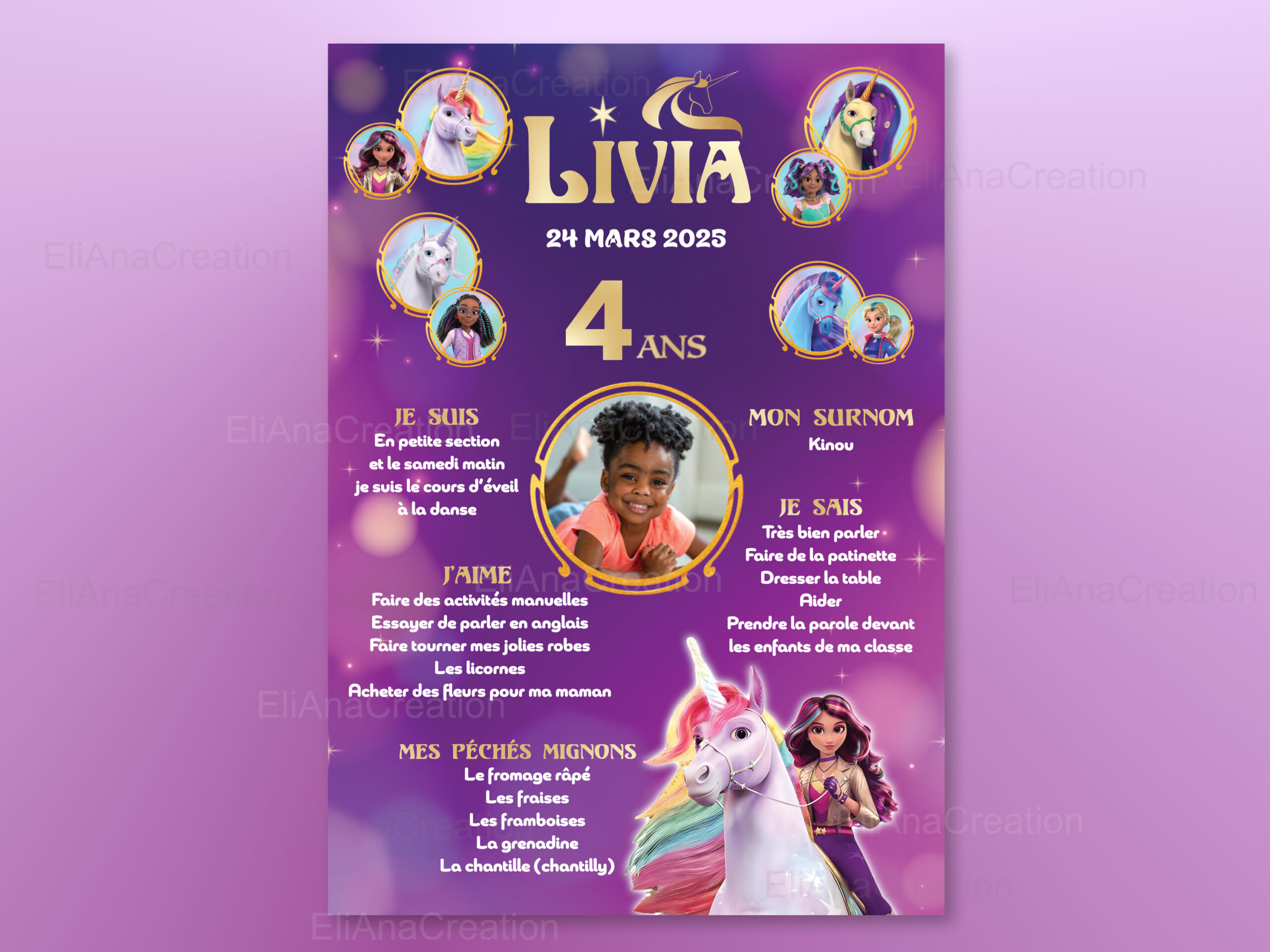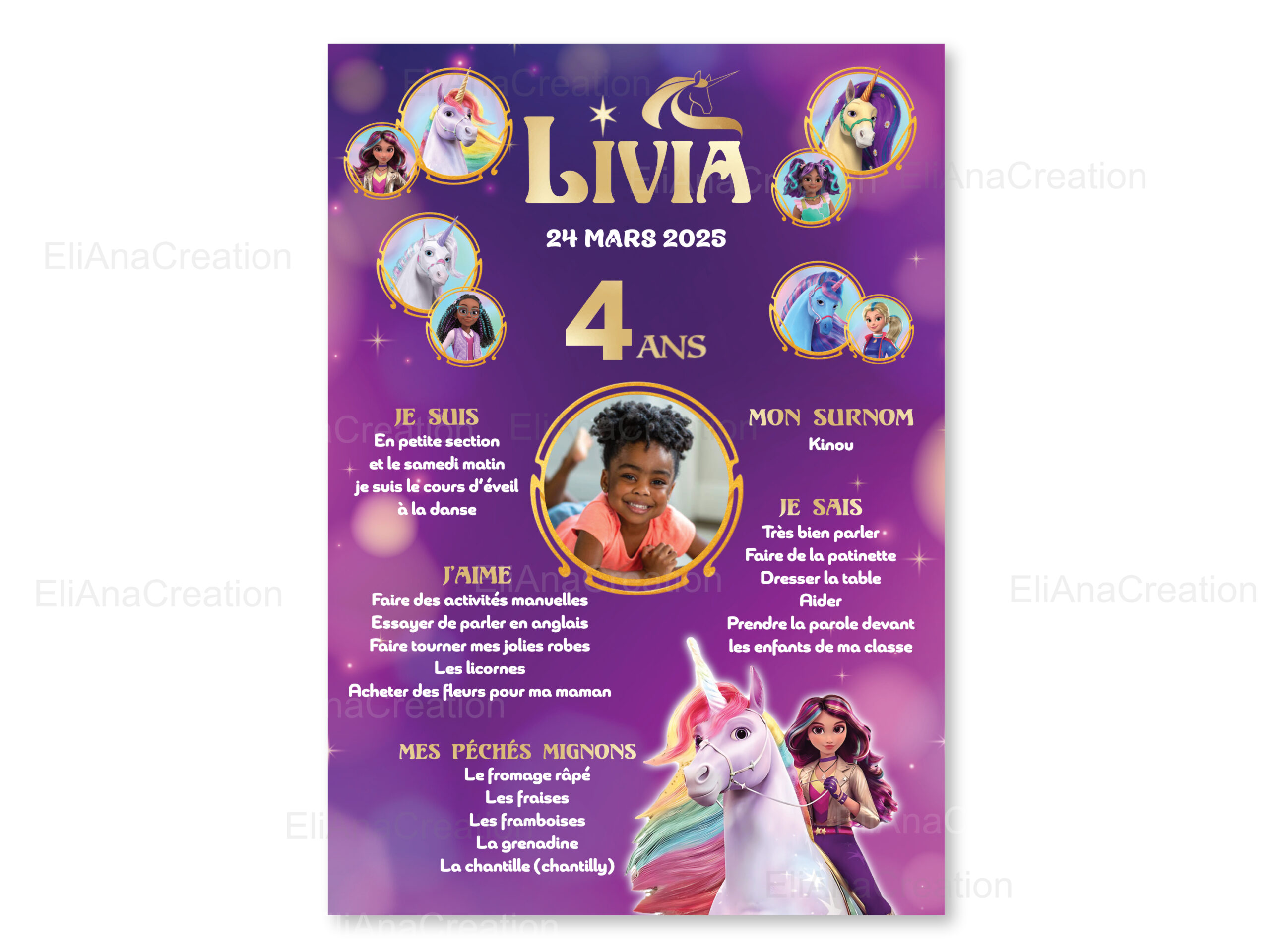 Affiche Anniversaire Personnalisée – Thème L’Ecole des Licornes