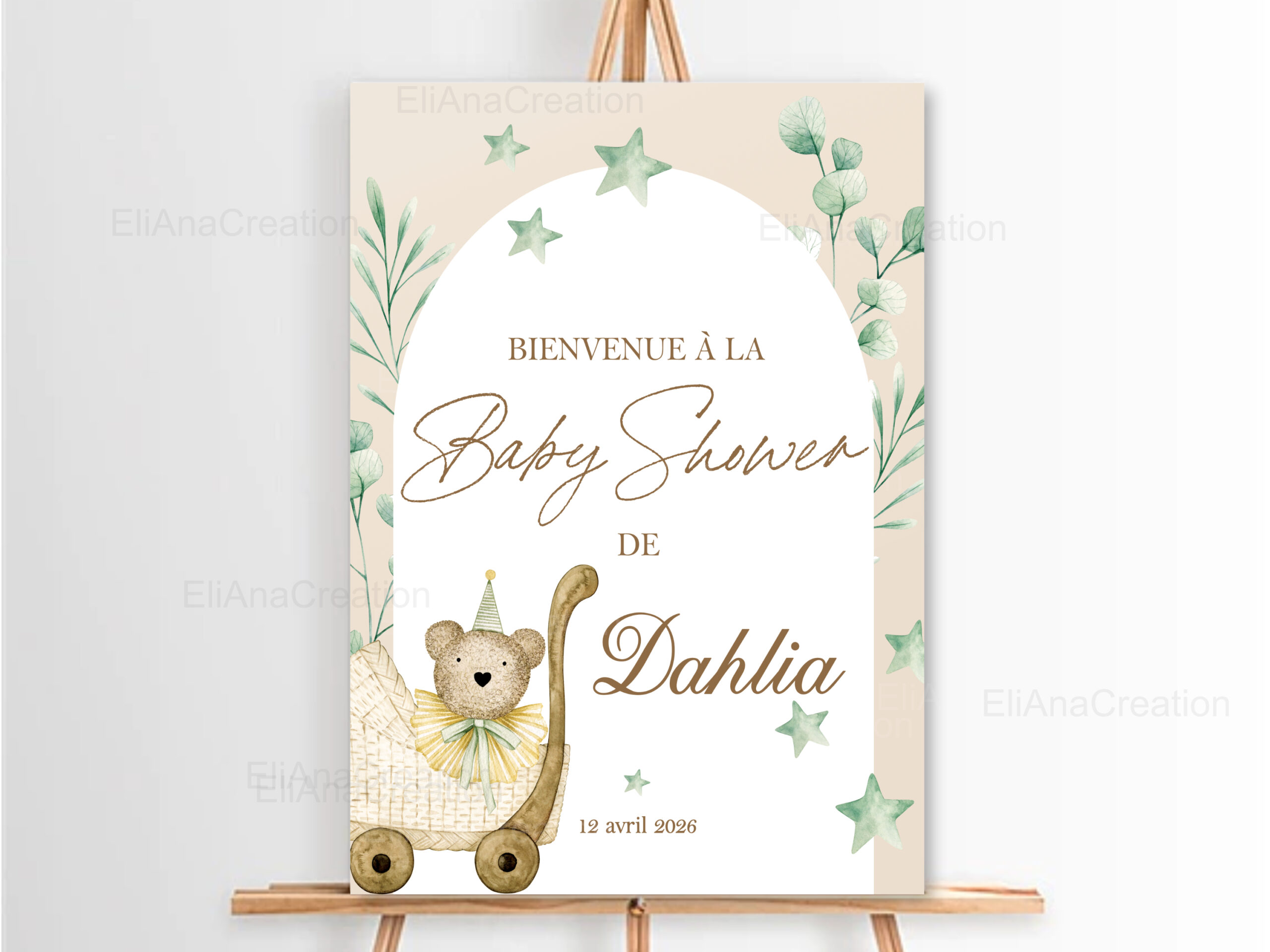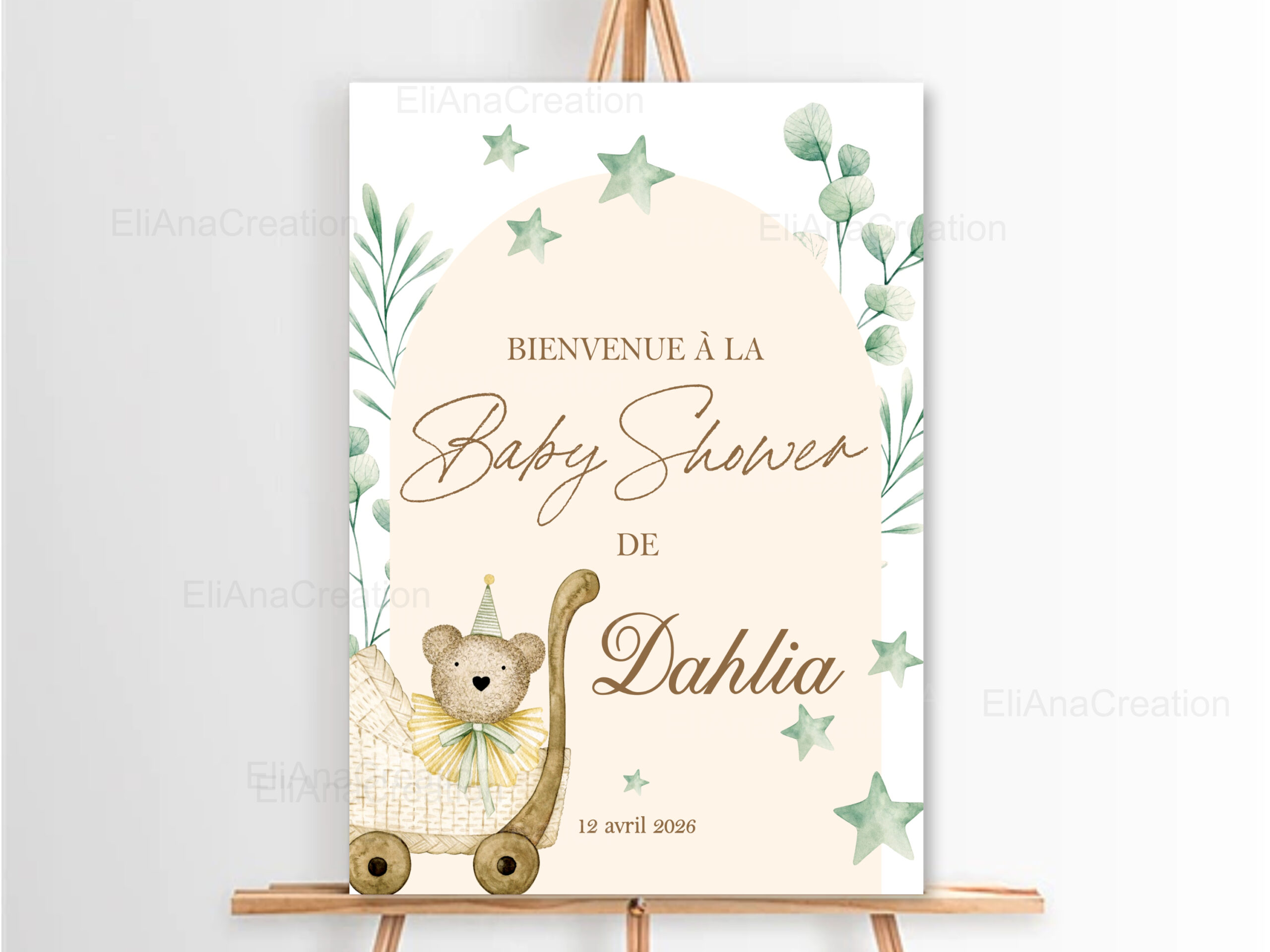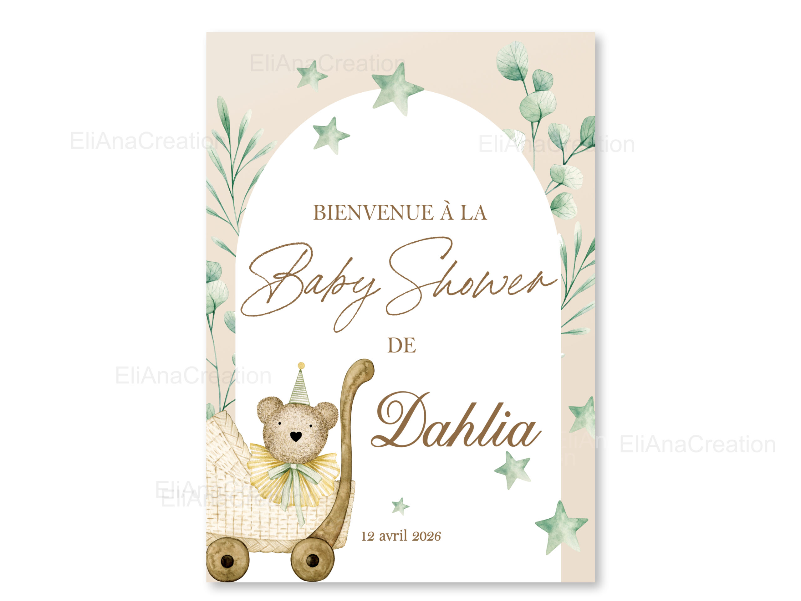 Cette affiche bienvenue personnalisée est idéale pour compléter votre décoration et sera un joli souvenir à garder après l’événement.