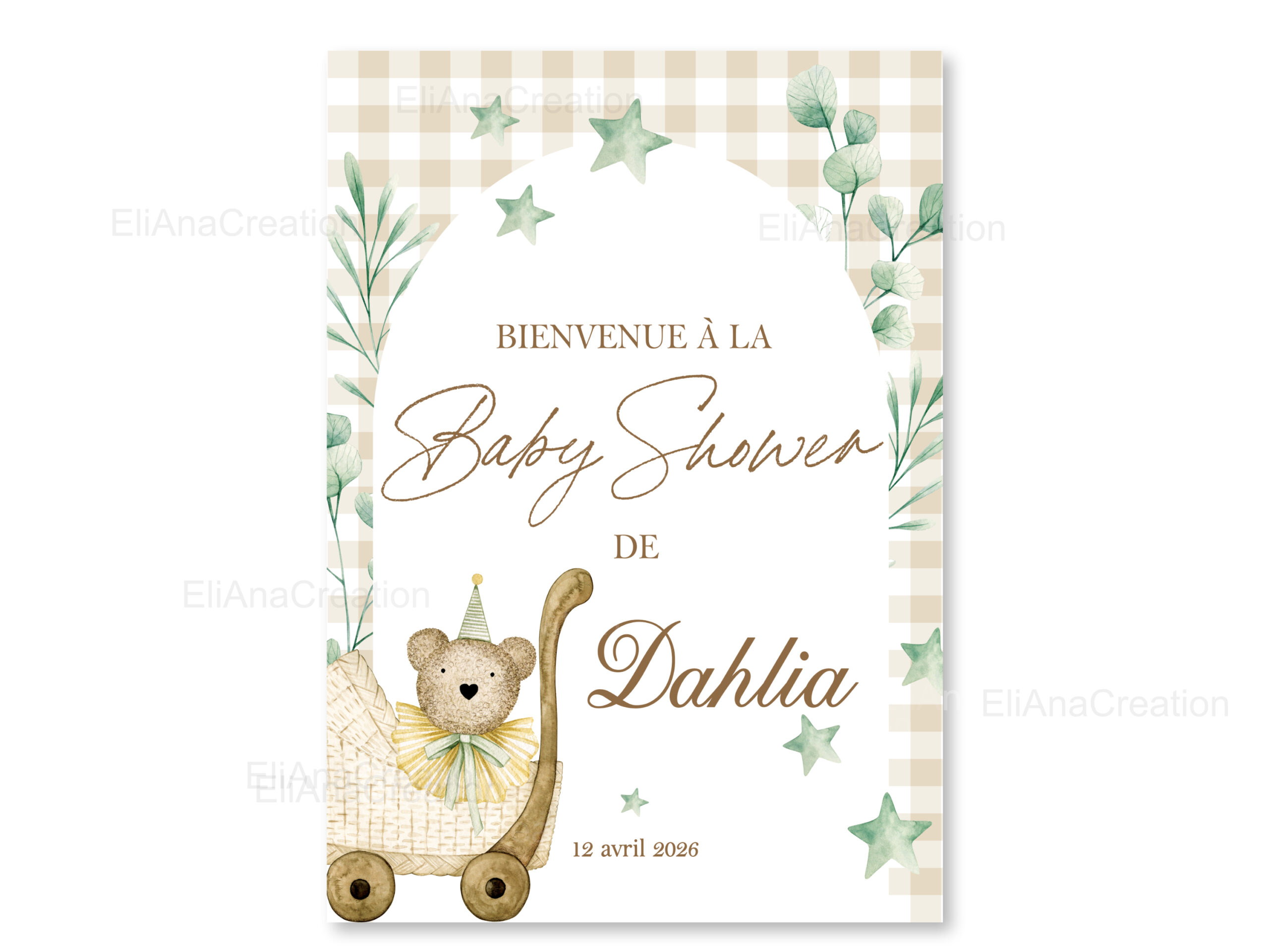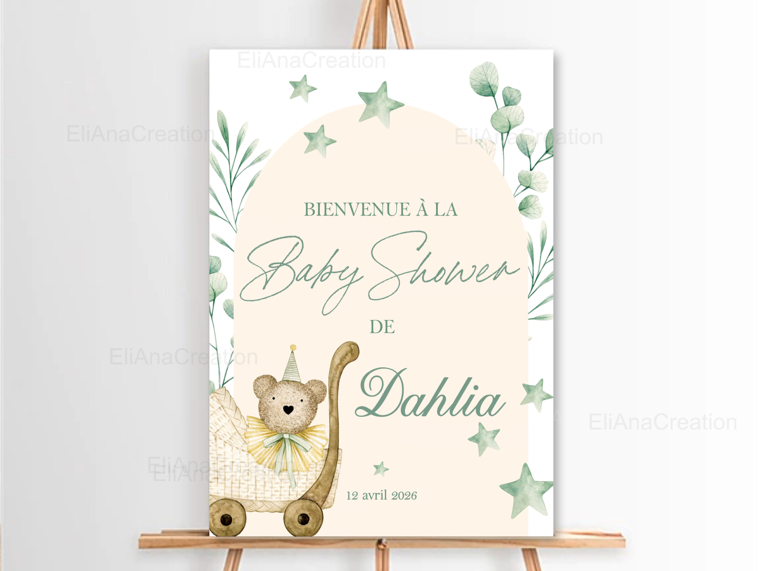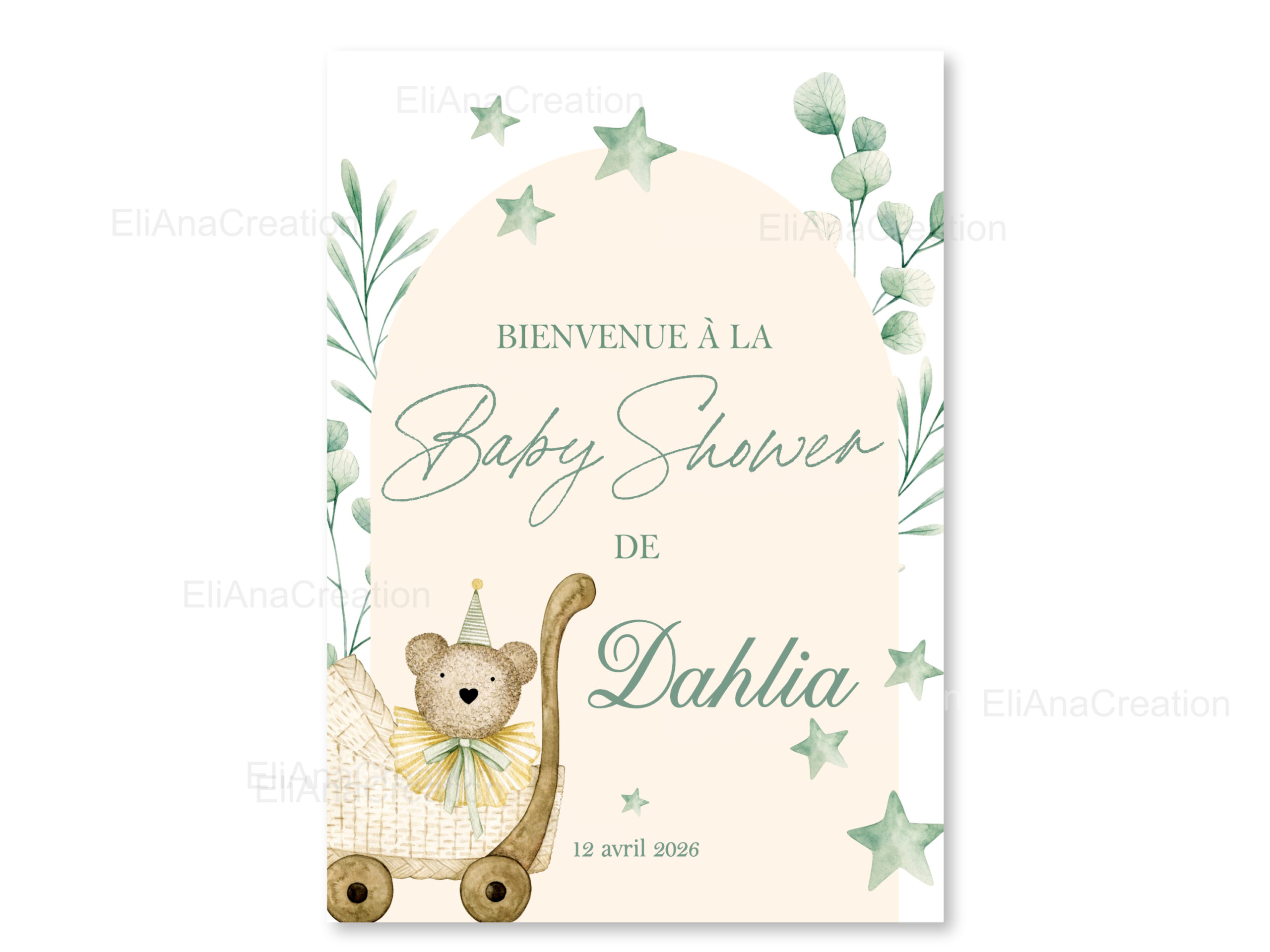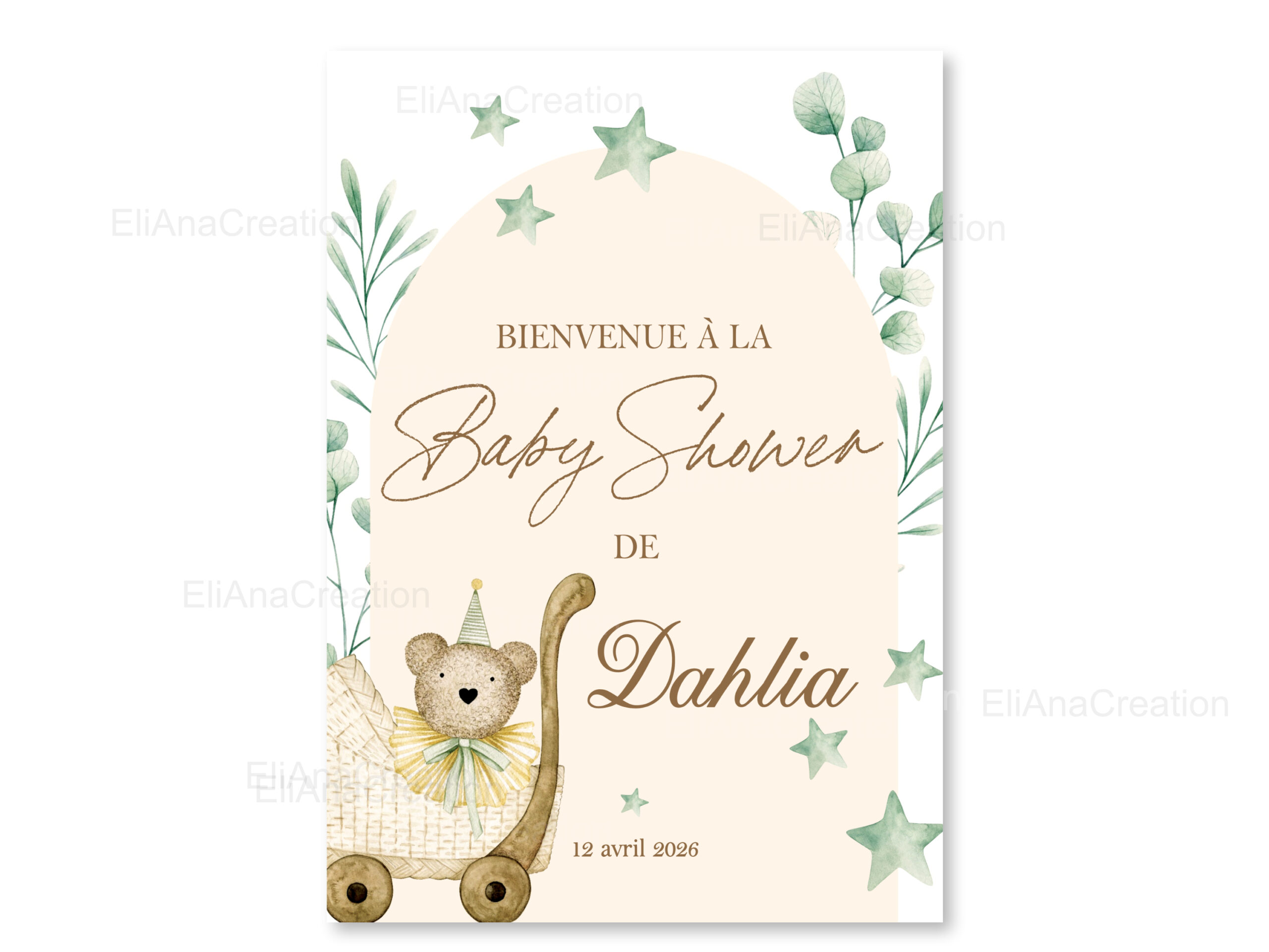 Cette affiche bienvenue personnalisée est idéale pour compléter votre décoration et sera un joli souvenir à garder après l’événement.