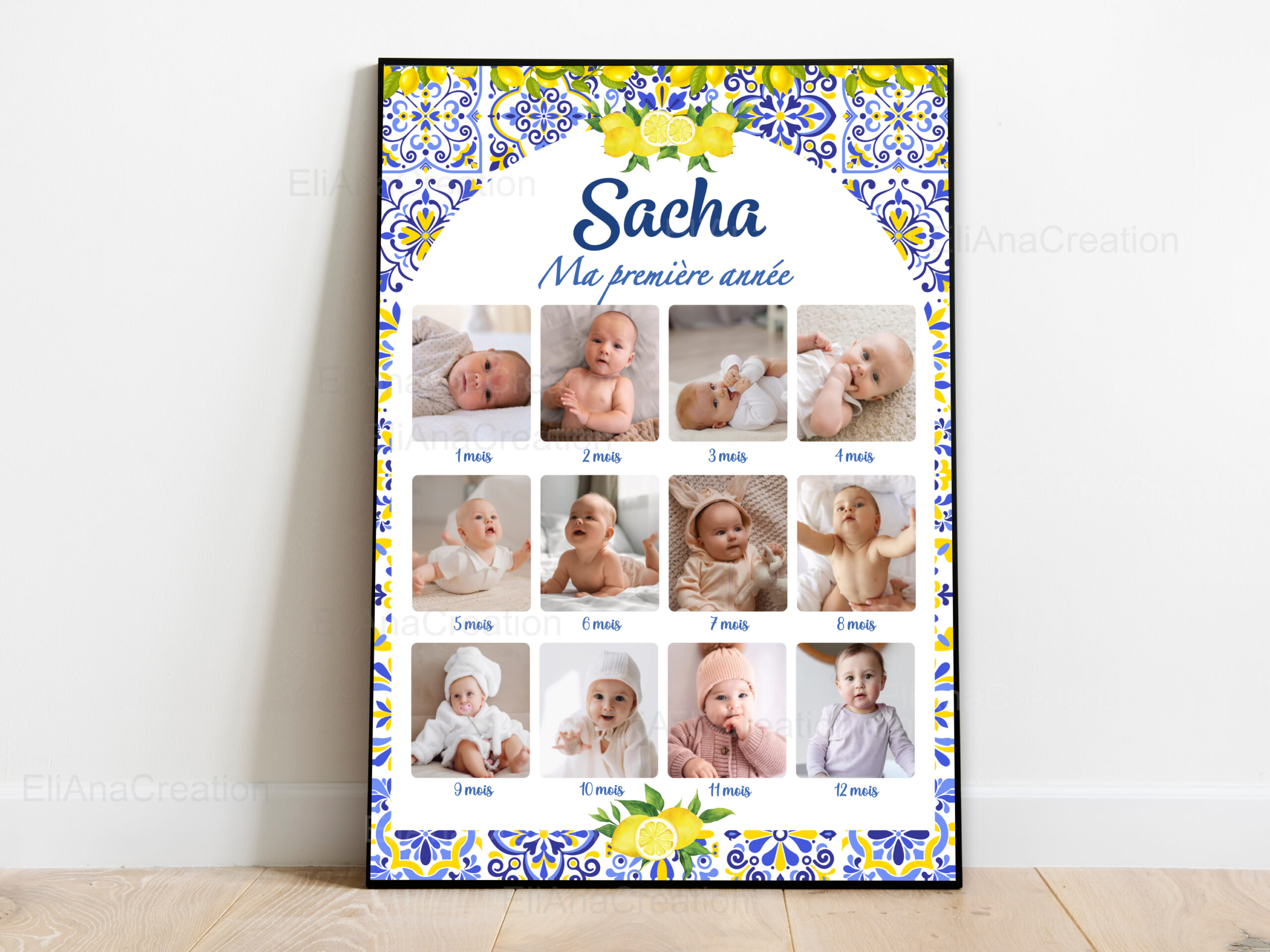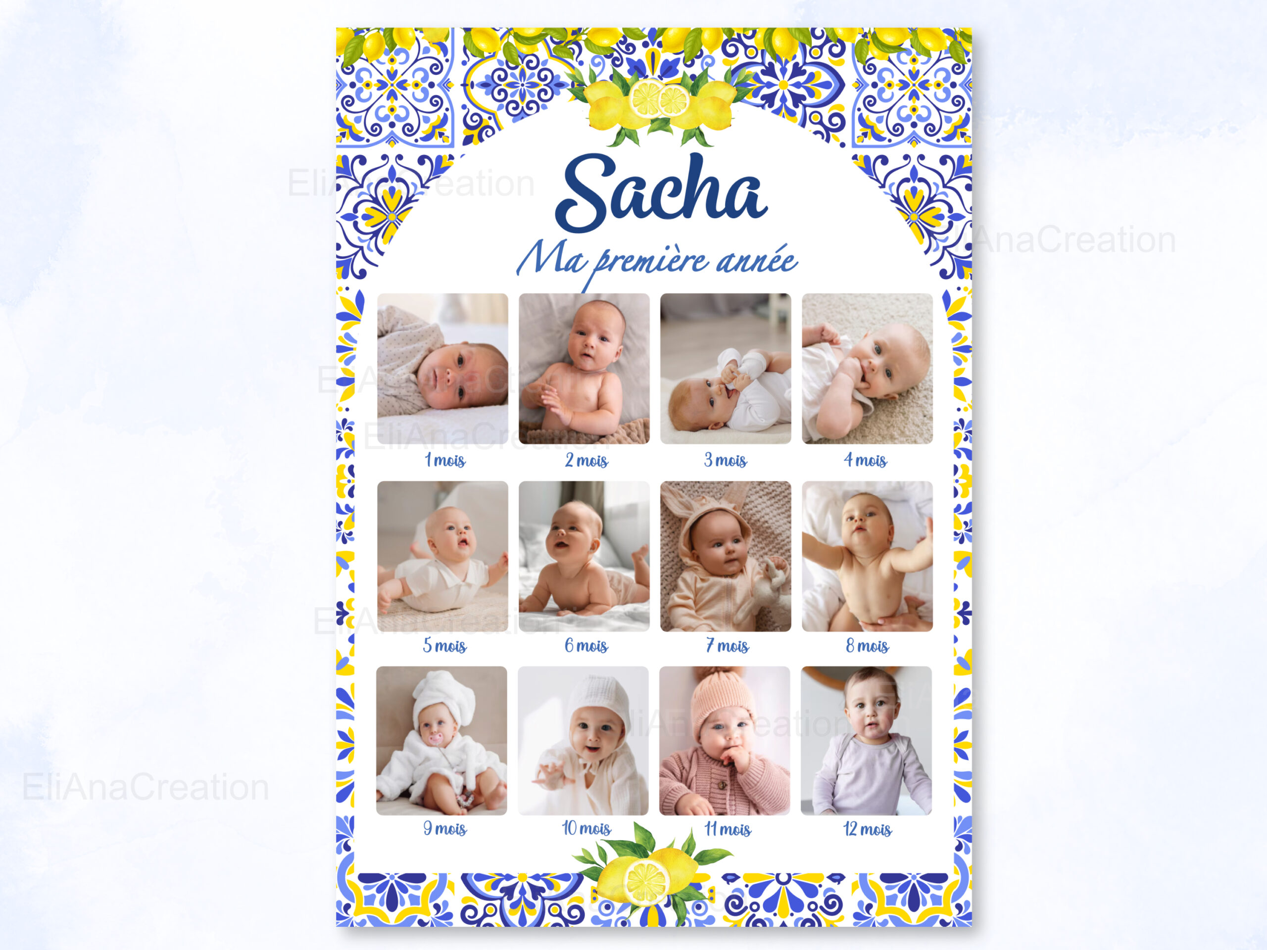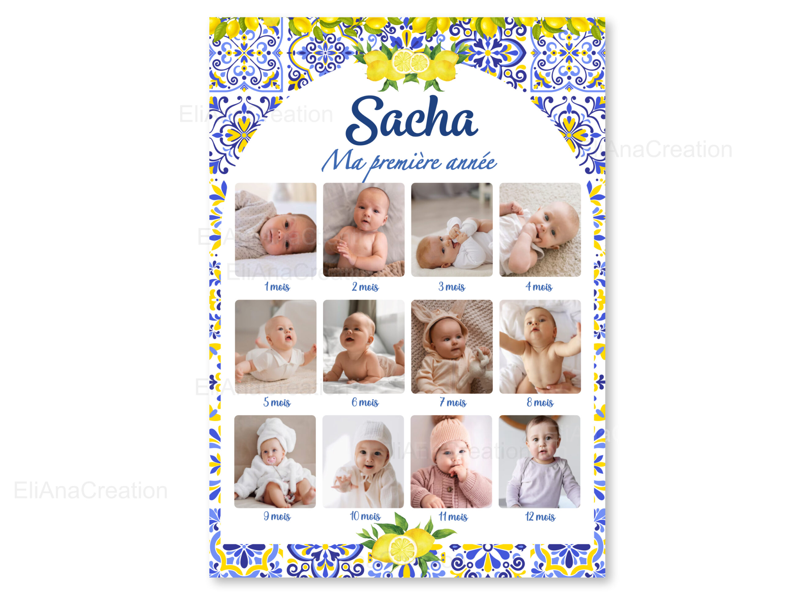 Immortalisez la première année de votre enfant avec une affiche personnalisée composée de ses plus jolies photos. Cette affiche est également disponible pour les autres années de votre enfant.
