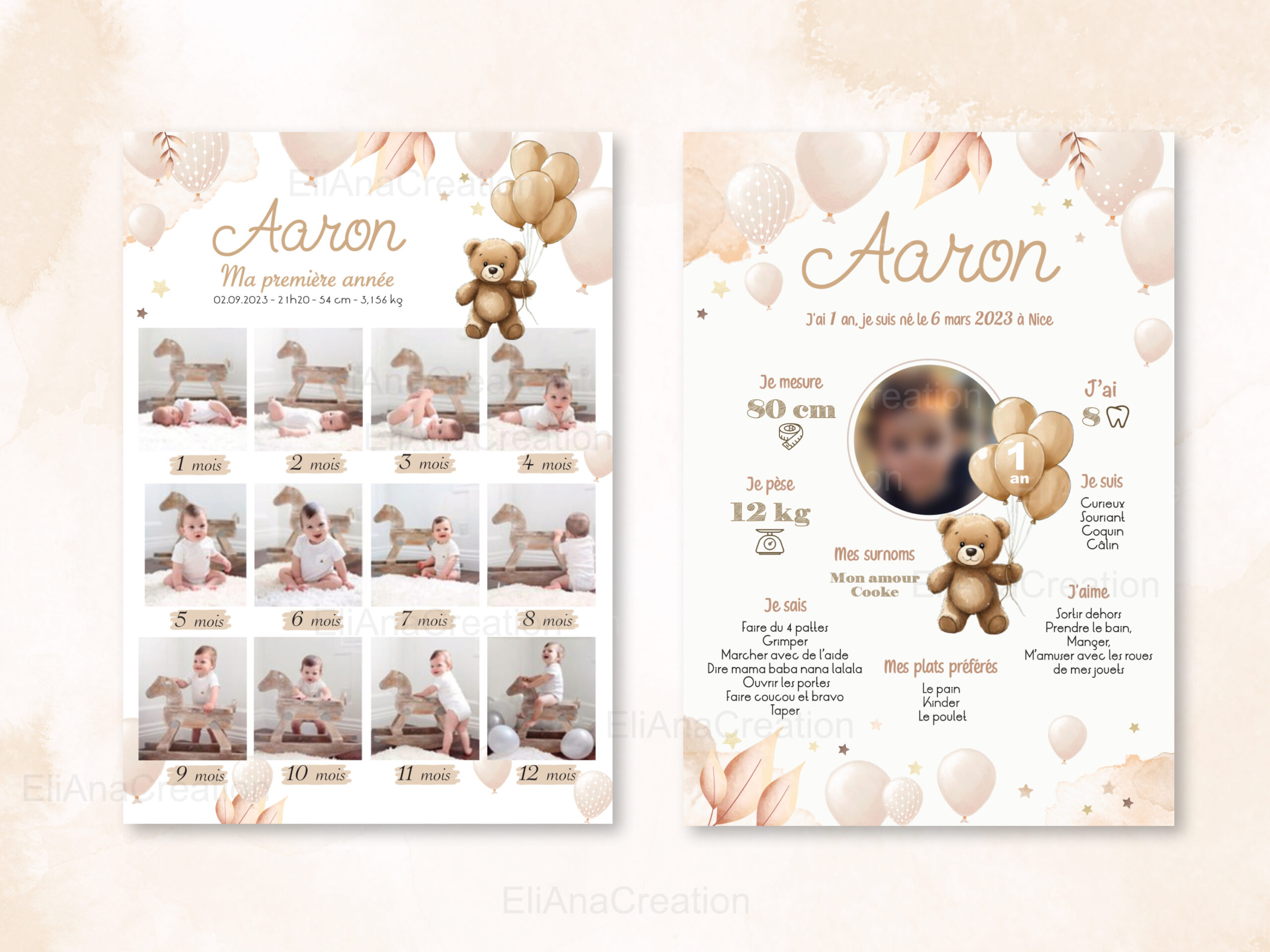 Affiche Personnalisée Ma Première Année – Thème Ourson beige