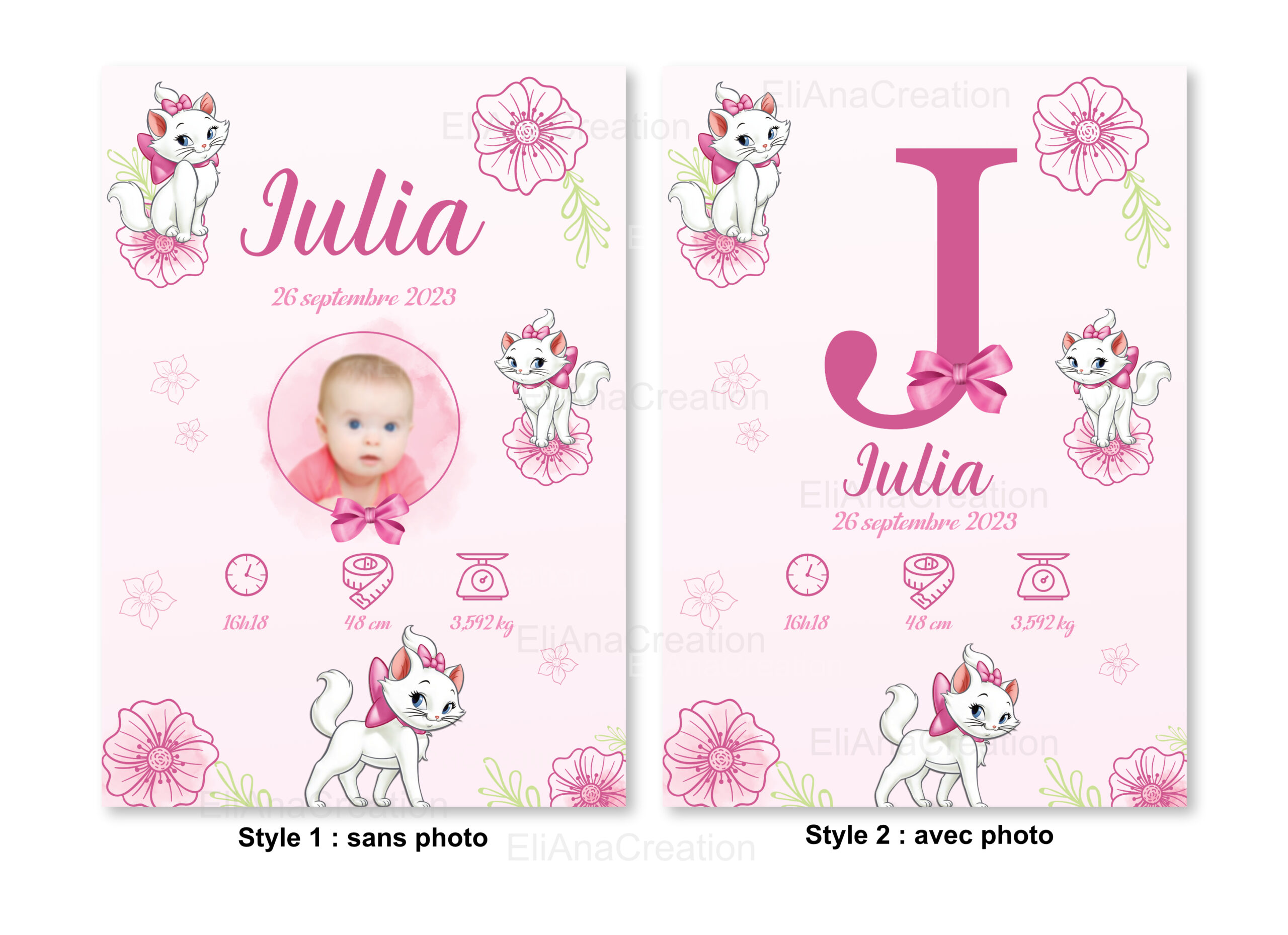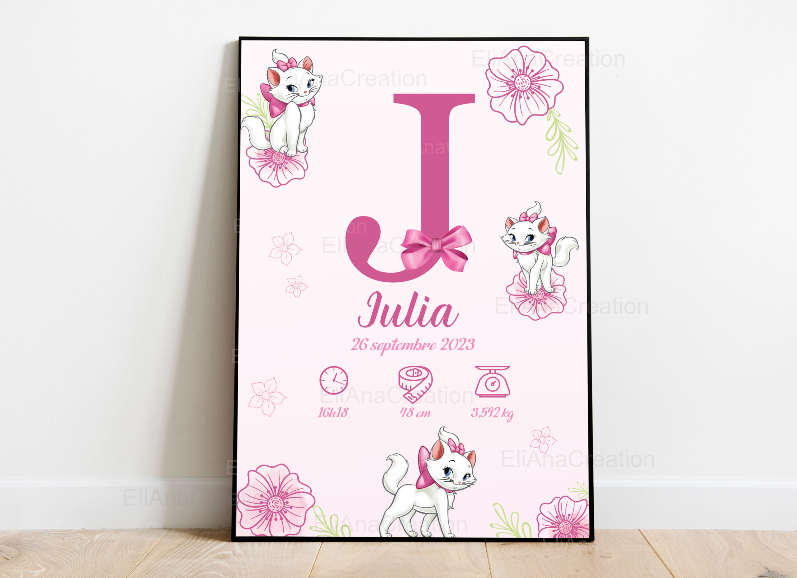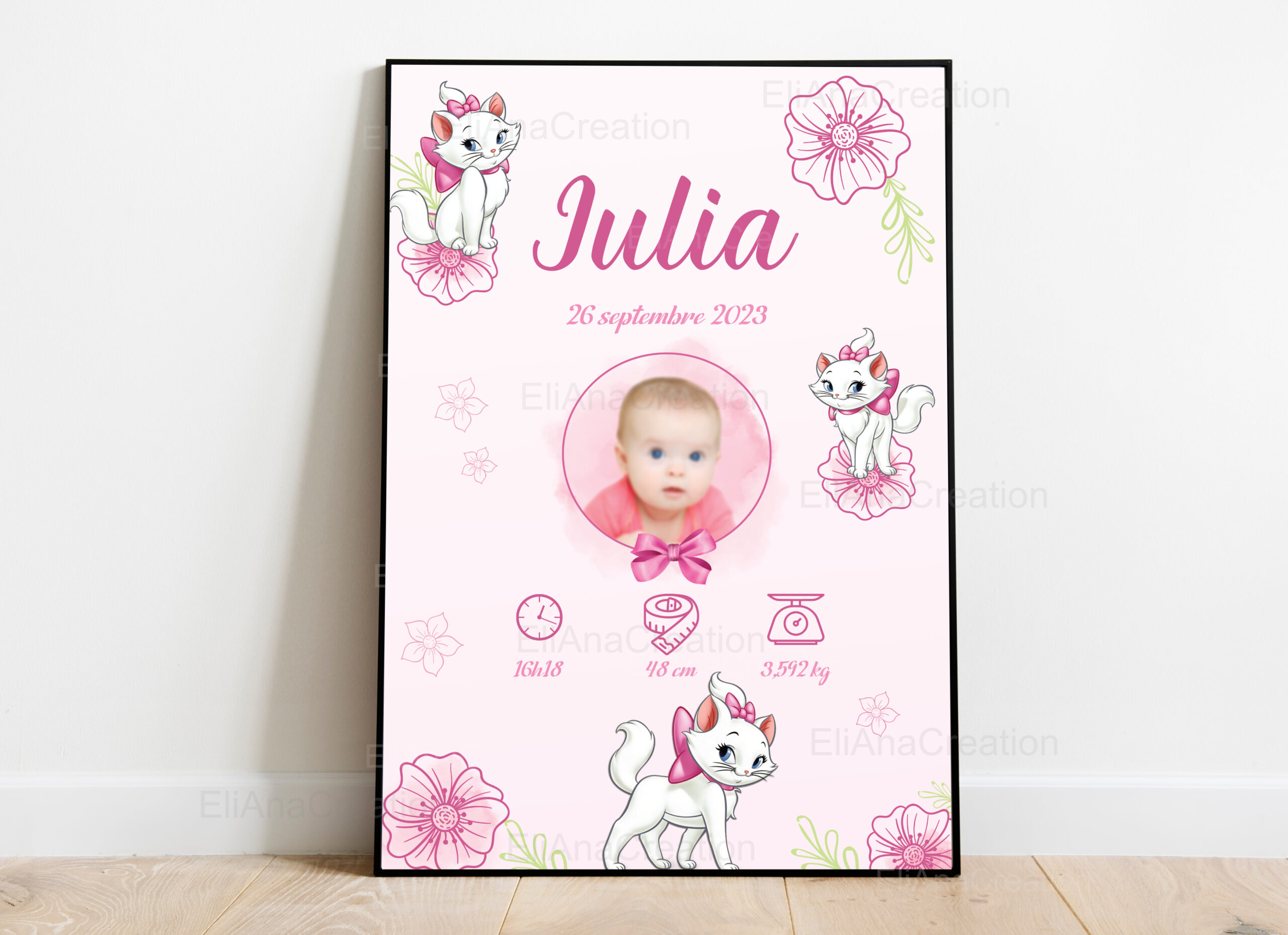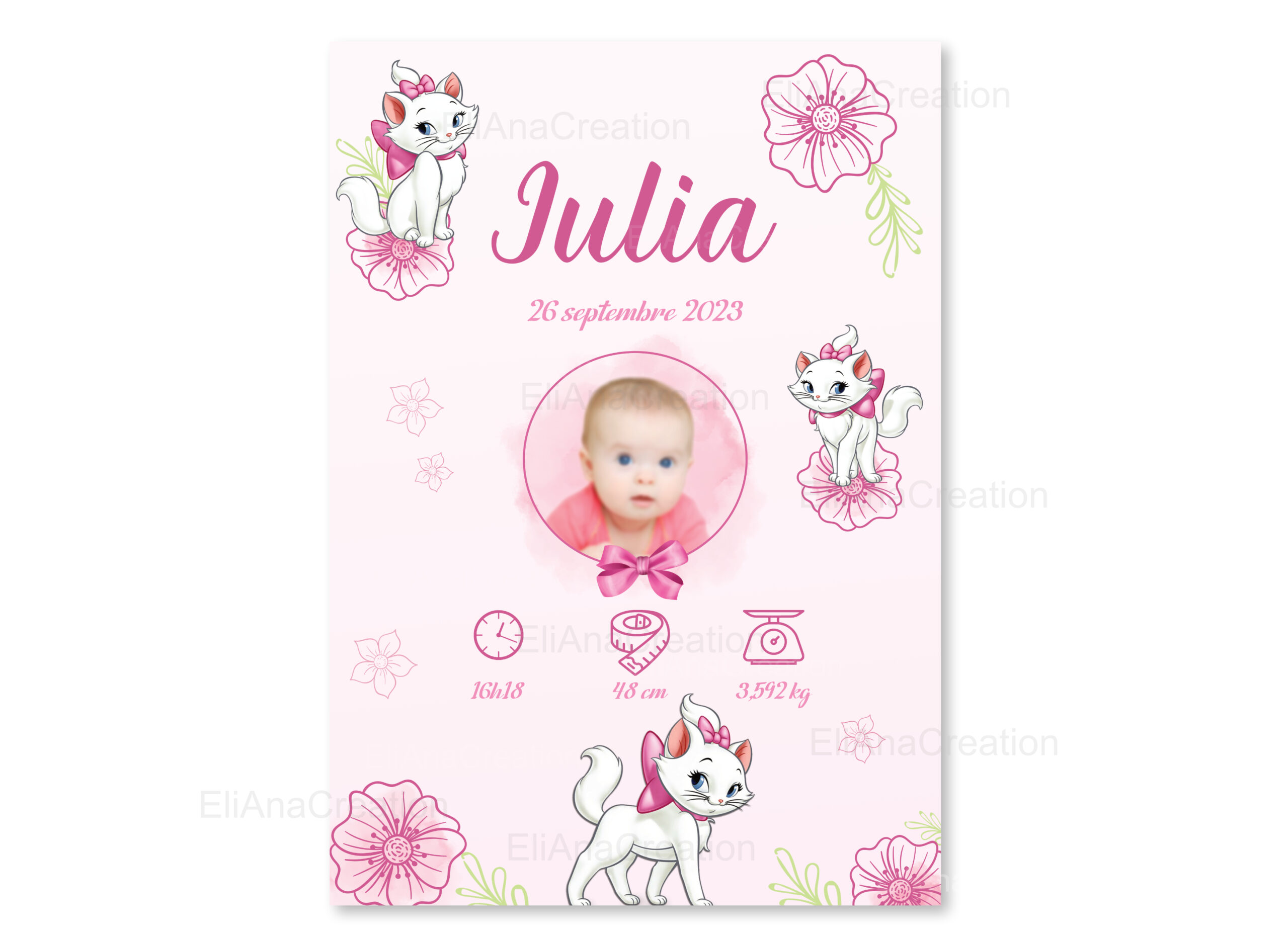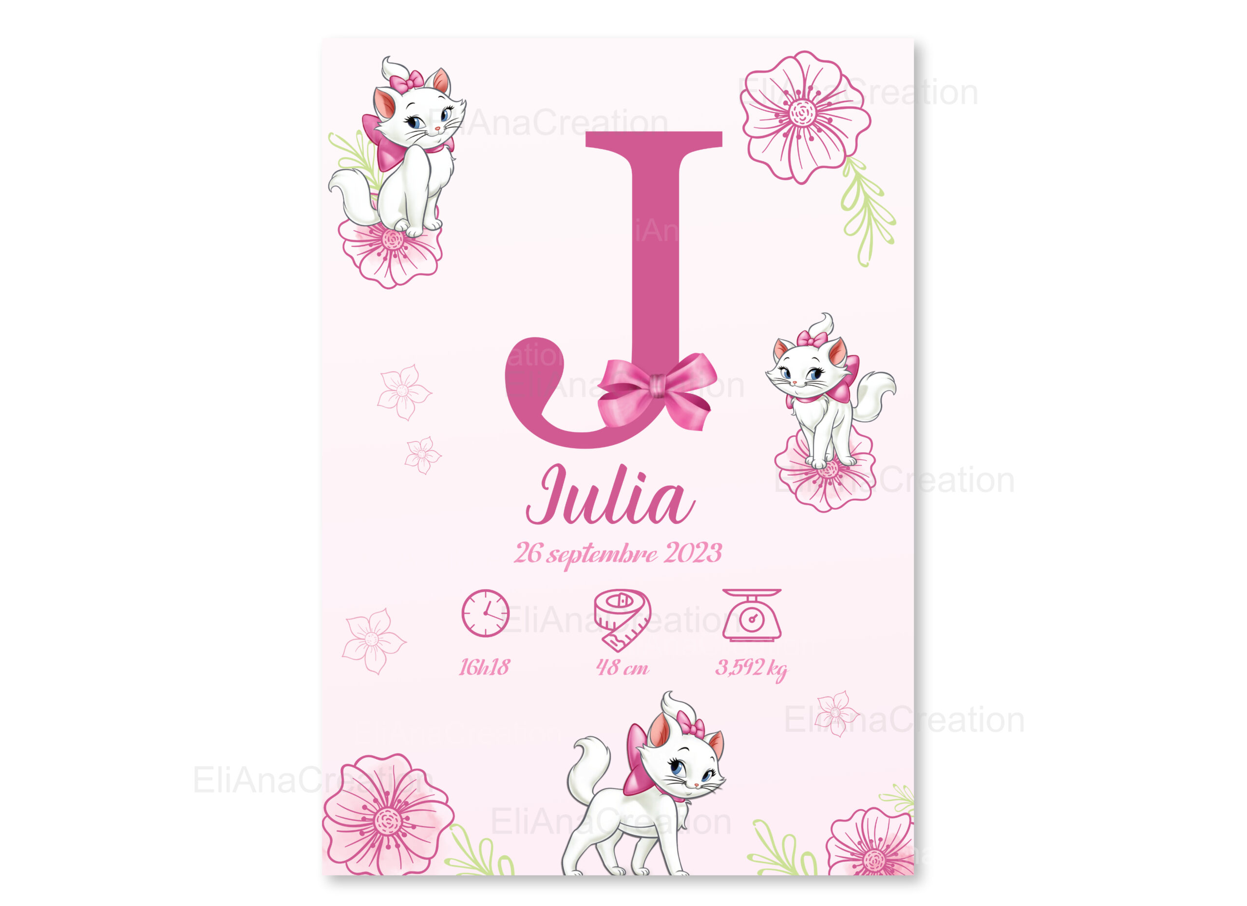 Affiche Naissance Personnalisée – Thème Marie – Aristochats