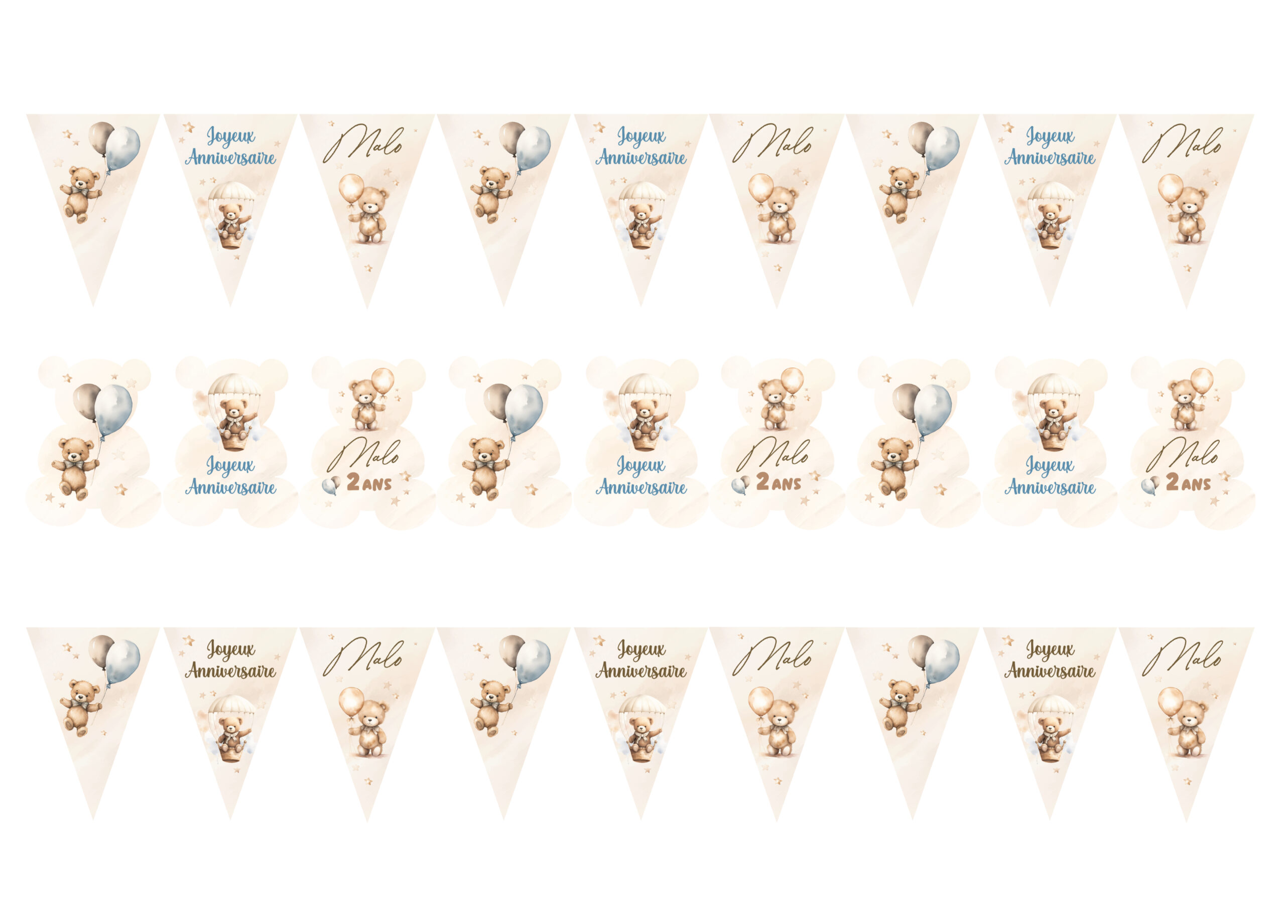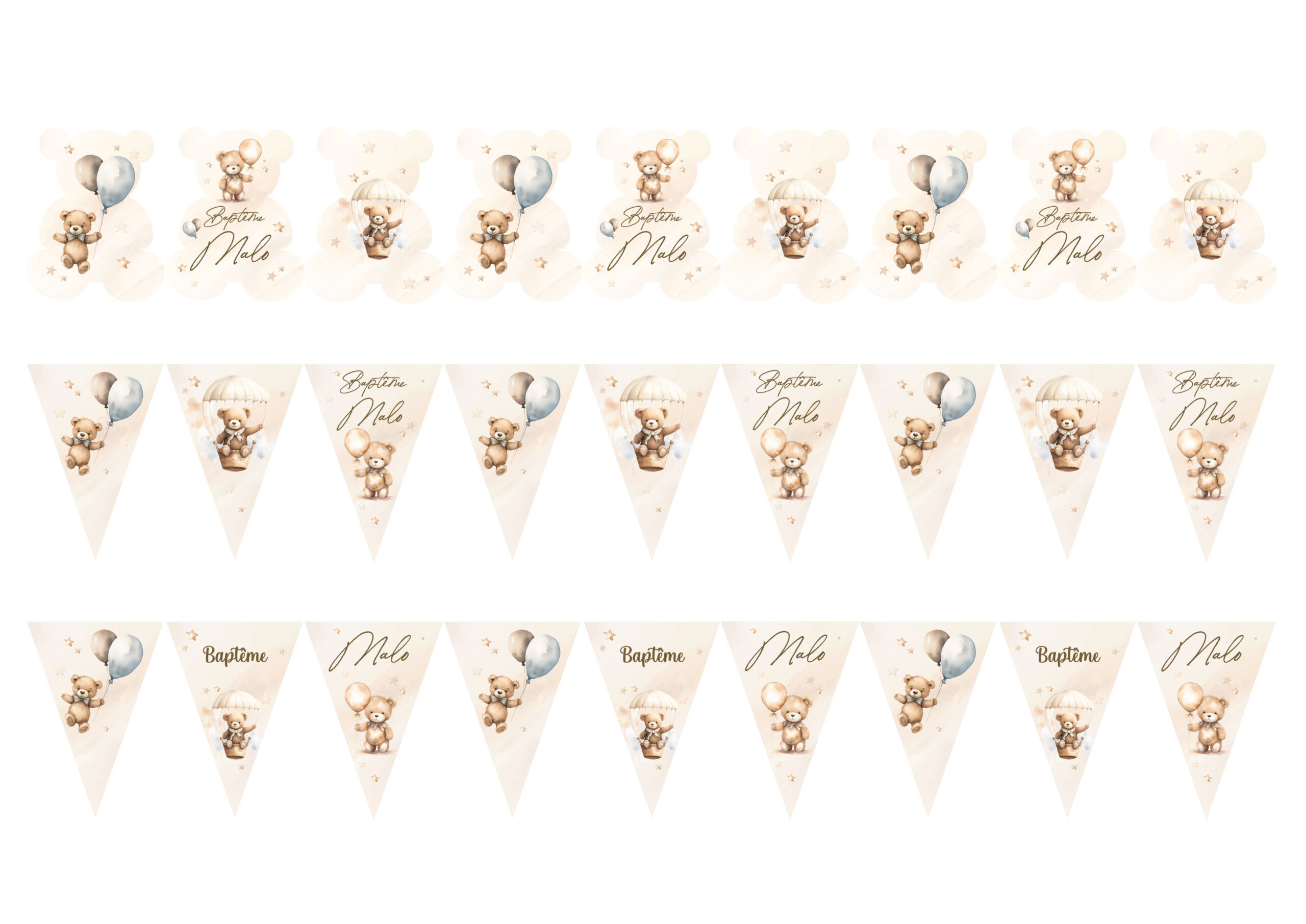 Guirlande de fanions personnalisée – Thème Oursons