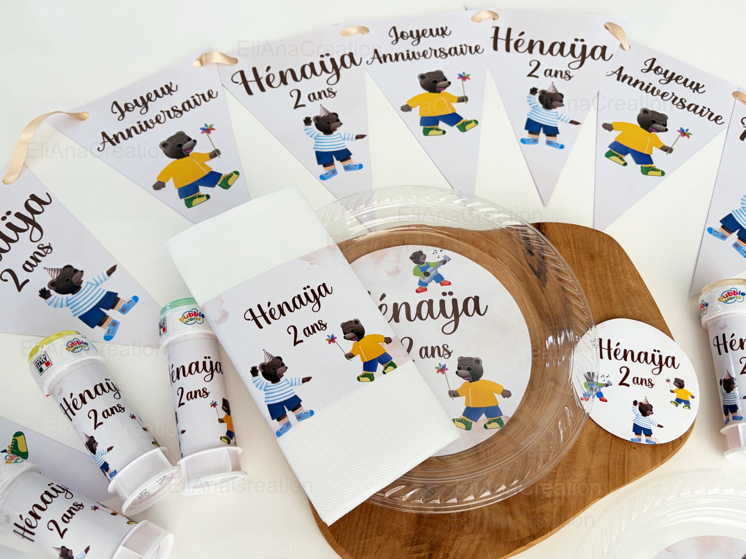 Apportez une touche unique à votre table de fête avec des assiettes personnalisées. Parfaites pour un anniversaire, un baptême, une baby shower ou toute autre célébration, elles sont personnalisées selon votre thème, vos couleurs et le prénom de l’enfant pour créer une décoration de table harmonieuse et mémorable.