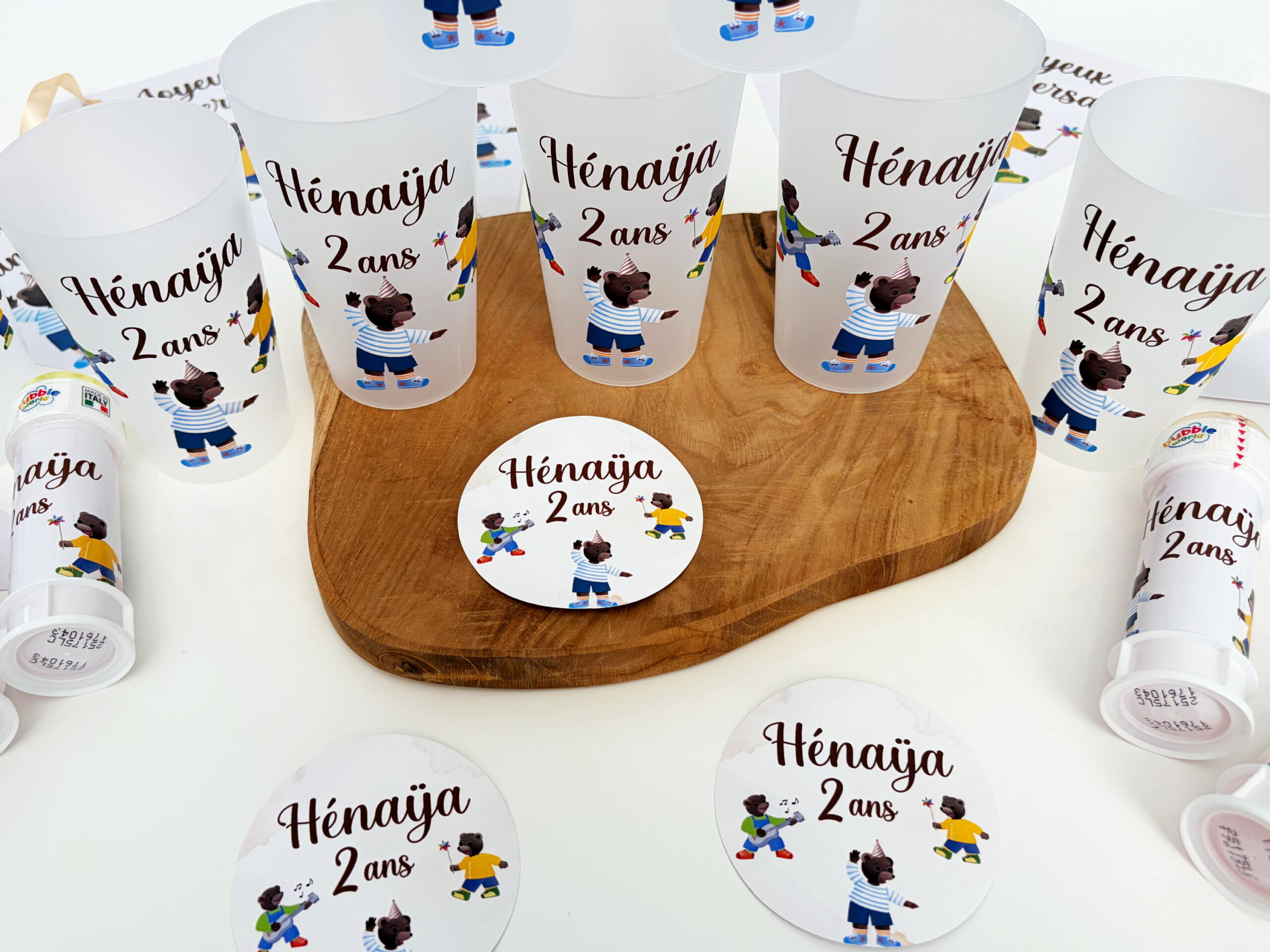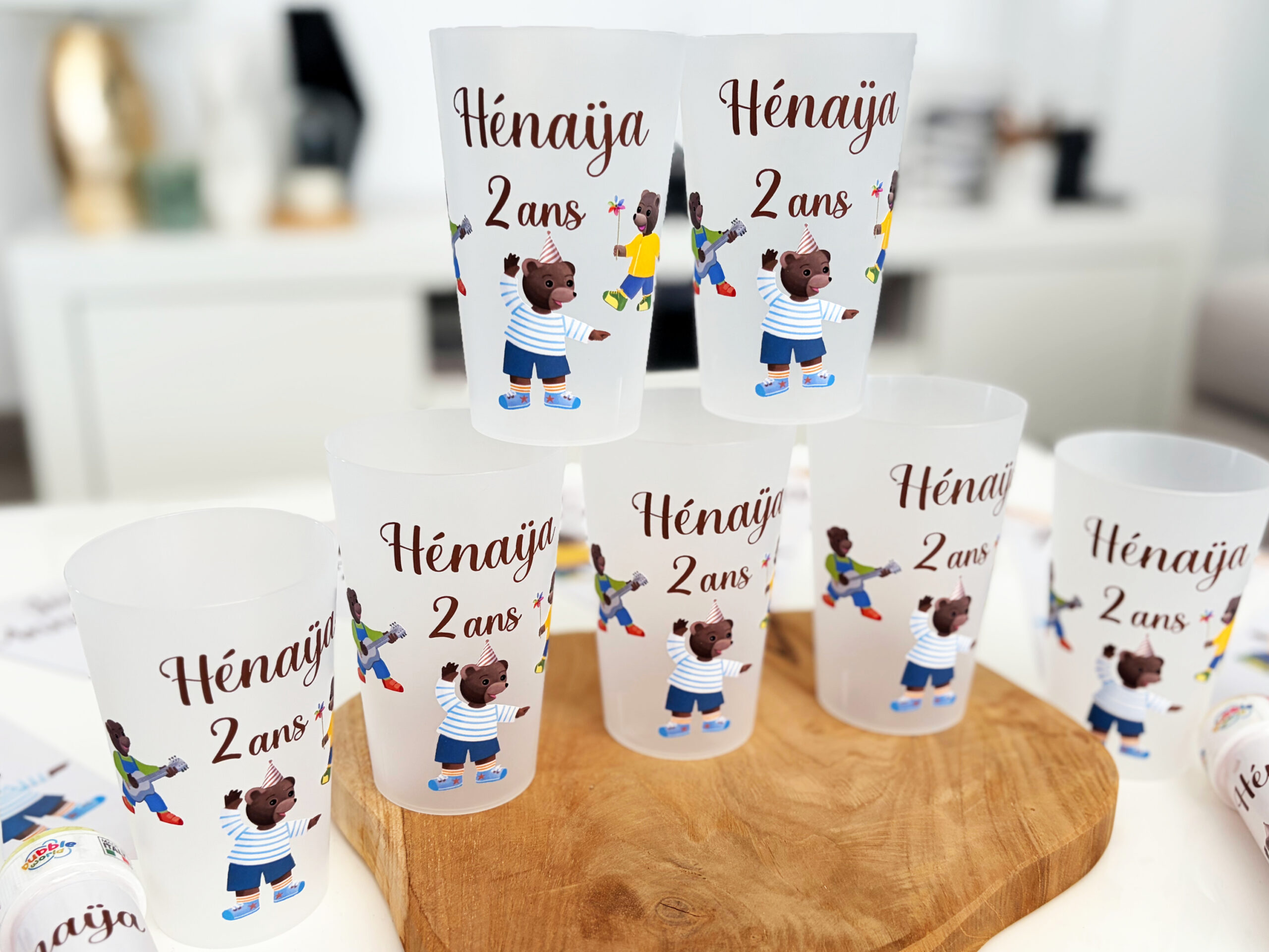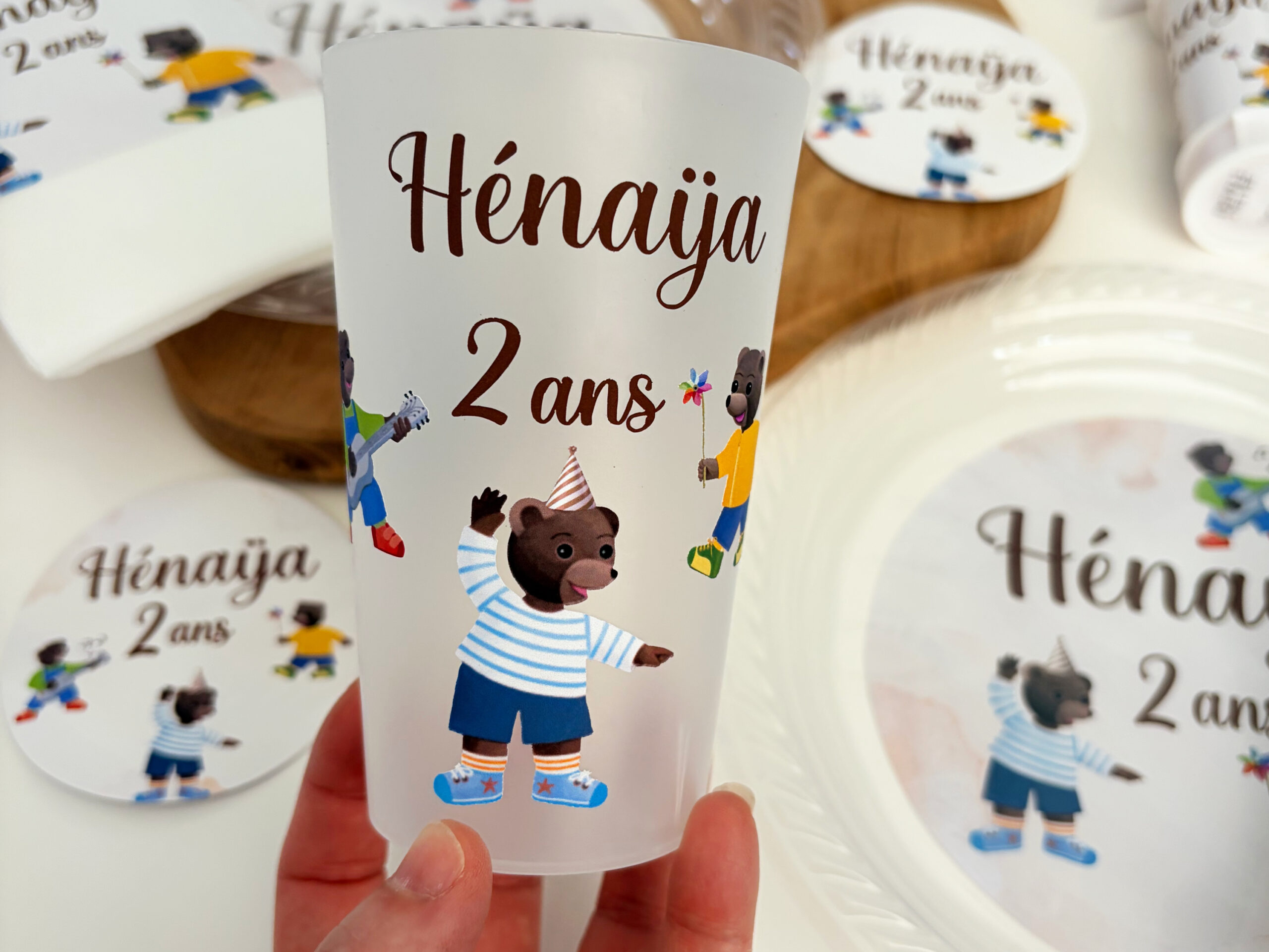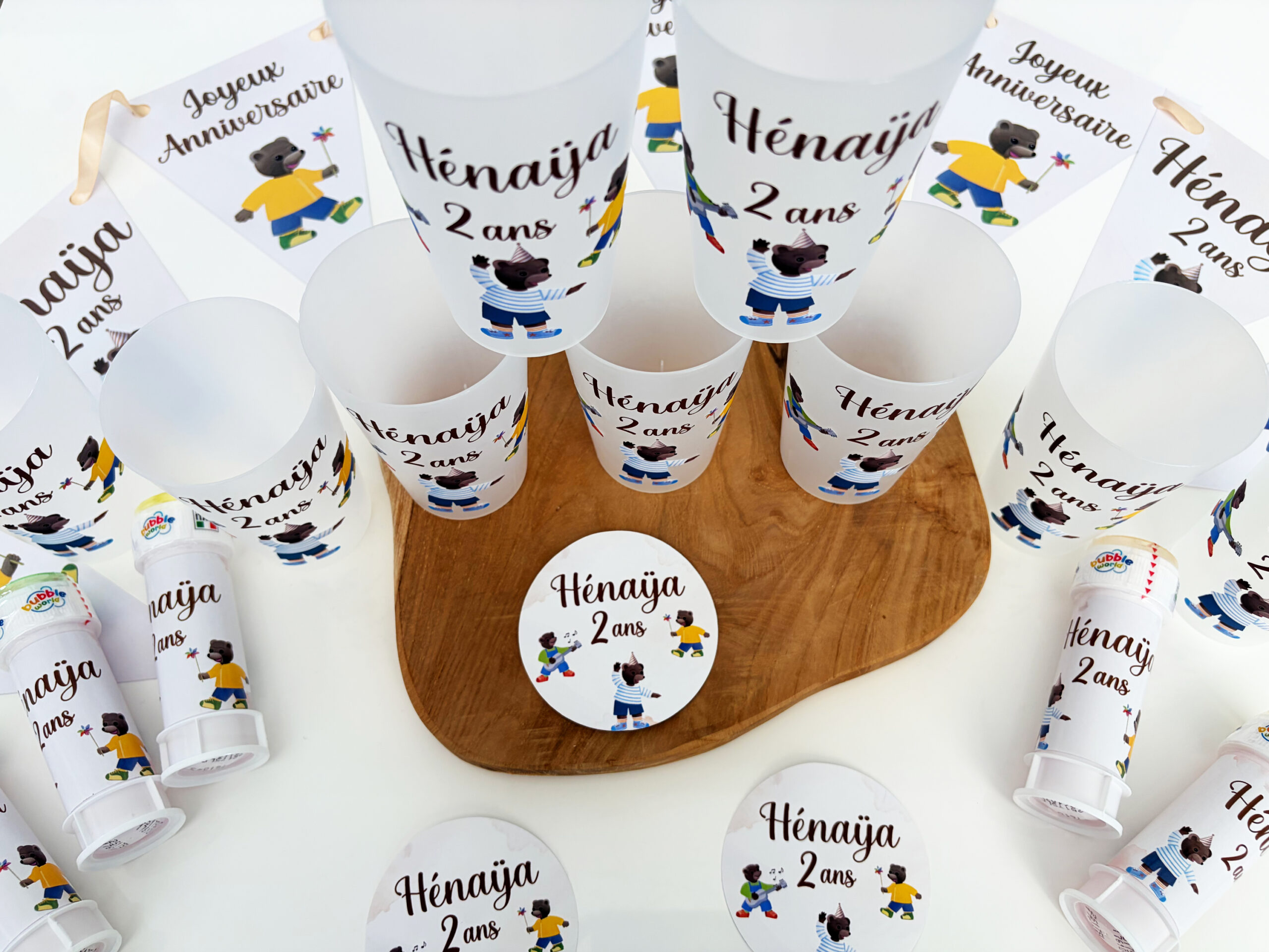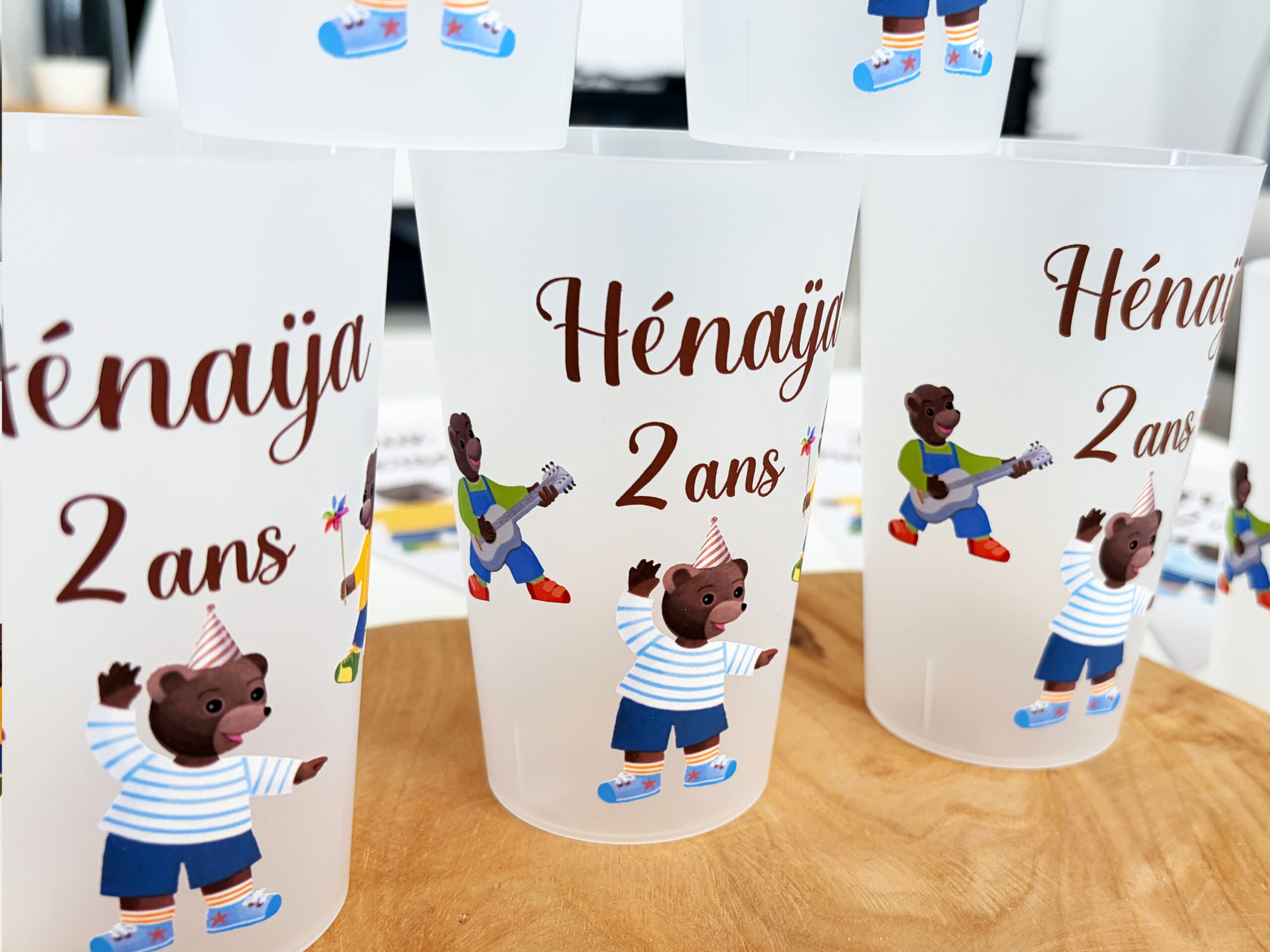 Créez des gobelets personnalisés adaptés à votre thème et à votre décoration. Prénom, couleurs, visuels : tout est personnalisable.