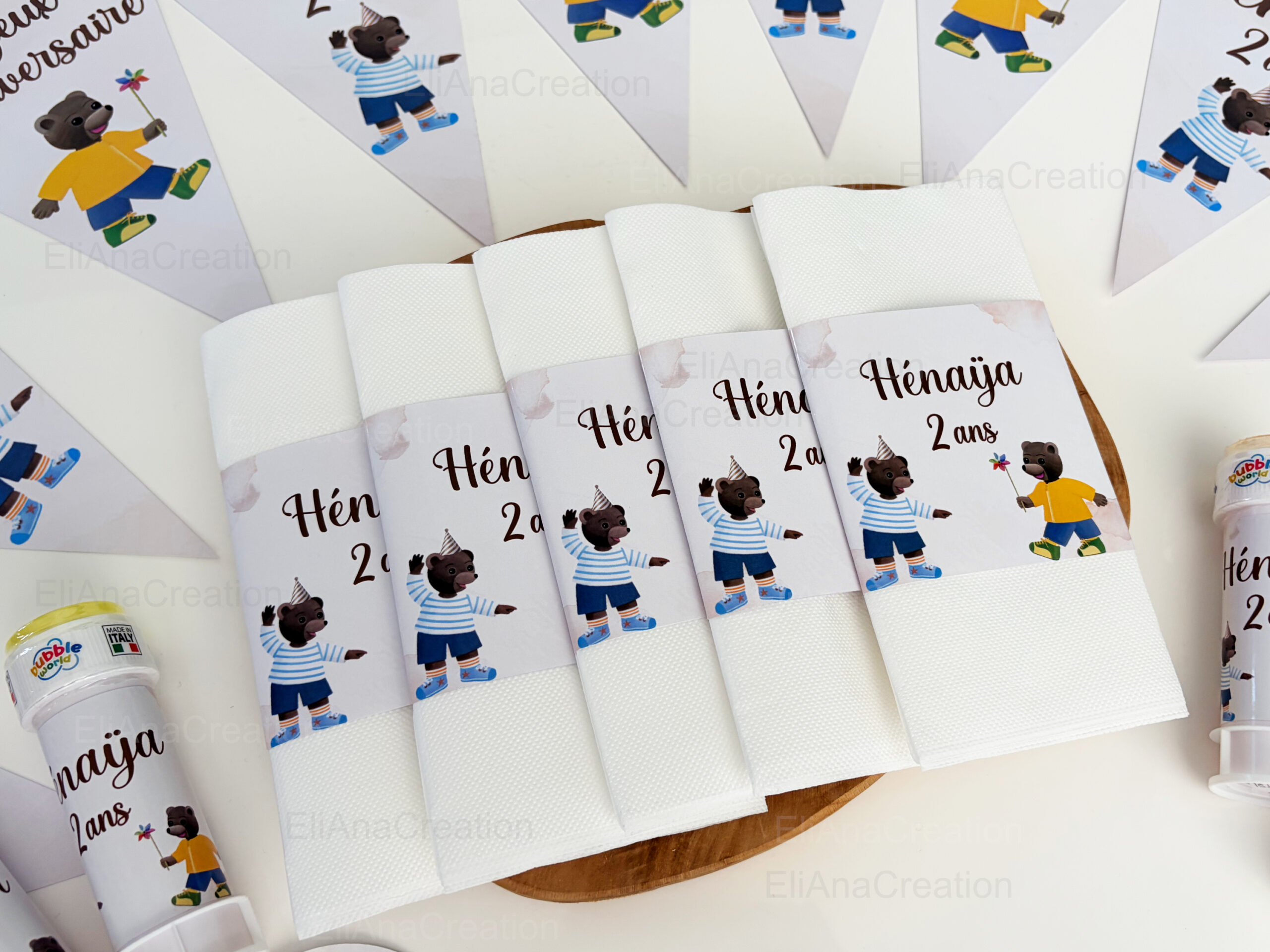Apportez une touche unique à votre table de fête avec des serviettes personnalisées. Parfaites pour un anniversaire, un baptême, une baby shower ou toute autre célébration, elles sont personnalisées selon votre thème, vos couleurs et le prénom de l’enfant pour créer une décoration de table harmonieuse et mémorable.