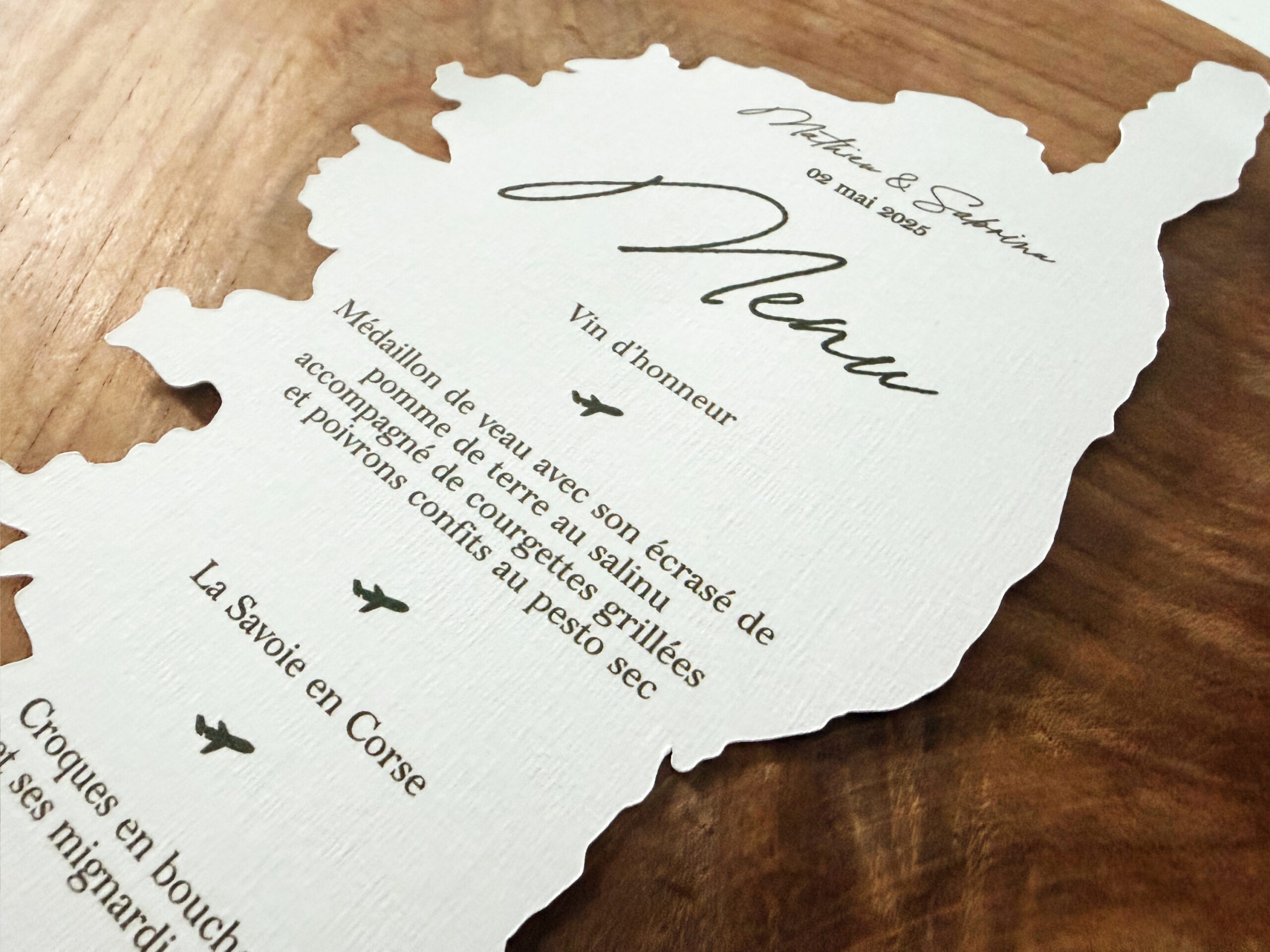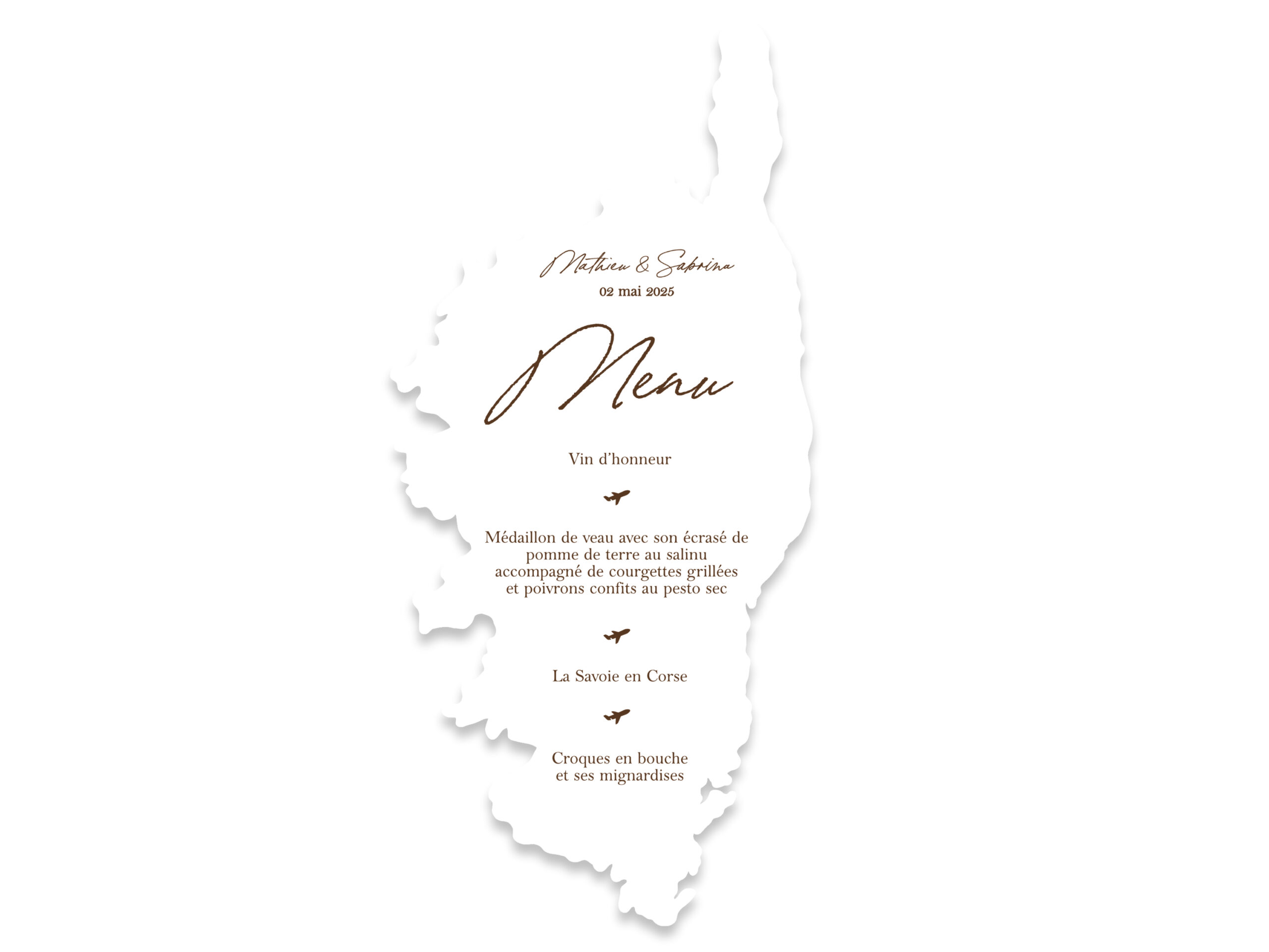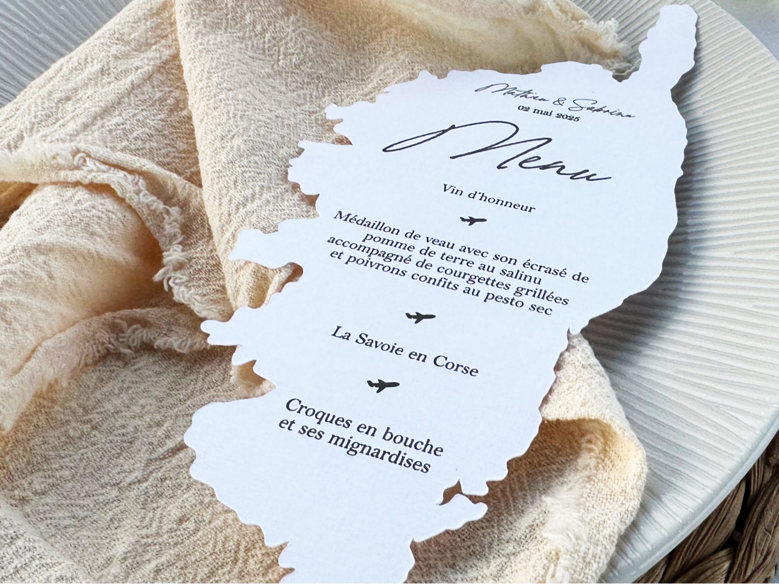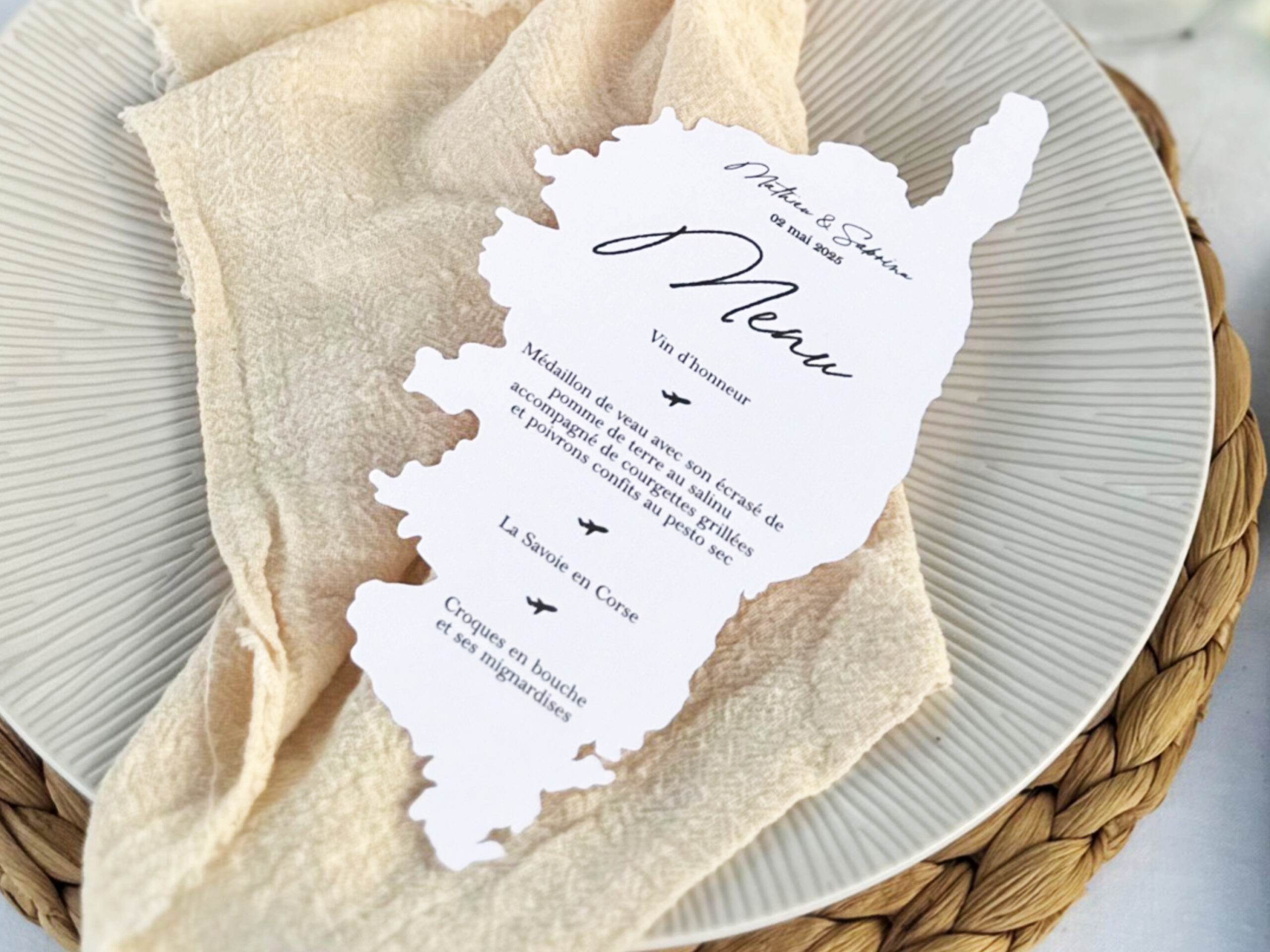 Transformez votre décoration de table en véritable invitation au voyage avec ce menu personnalisé découpé à la forme de la destination de votre choix. Ce menu personnalisé est parfait pour une réception sur le thème du voyage.