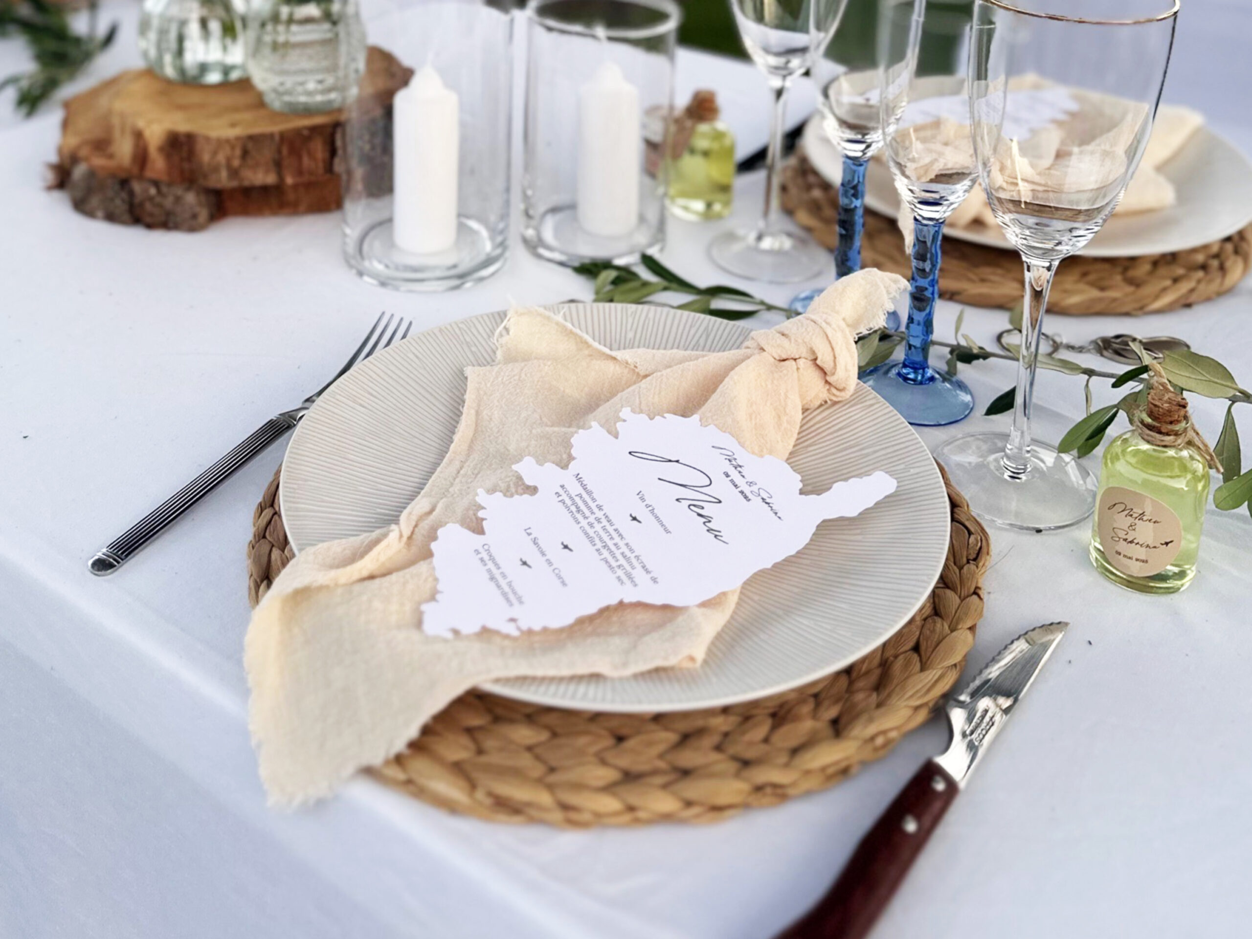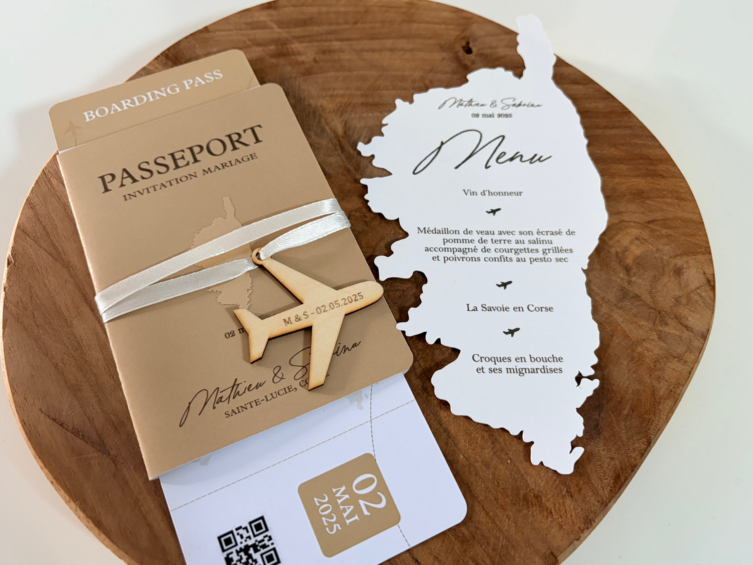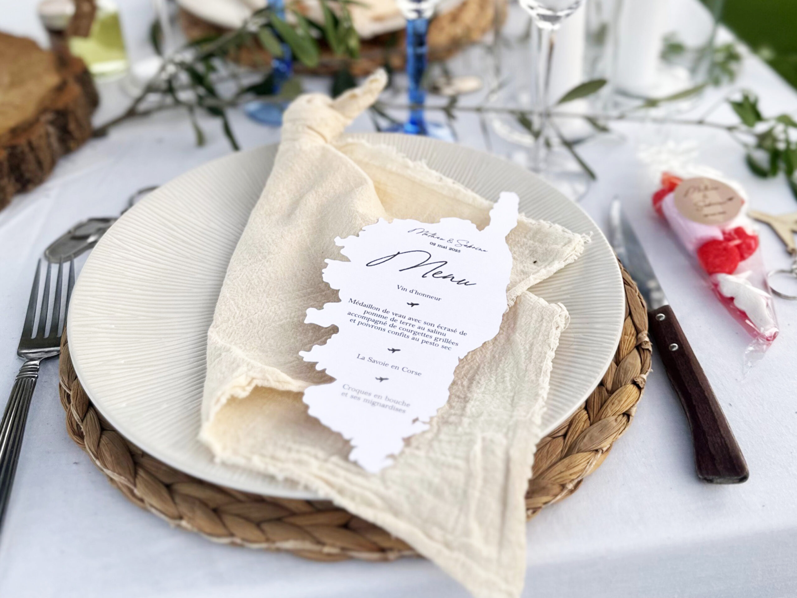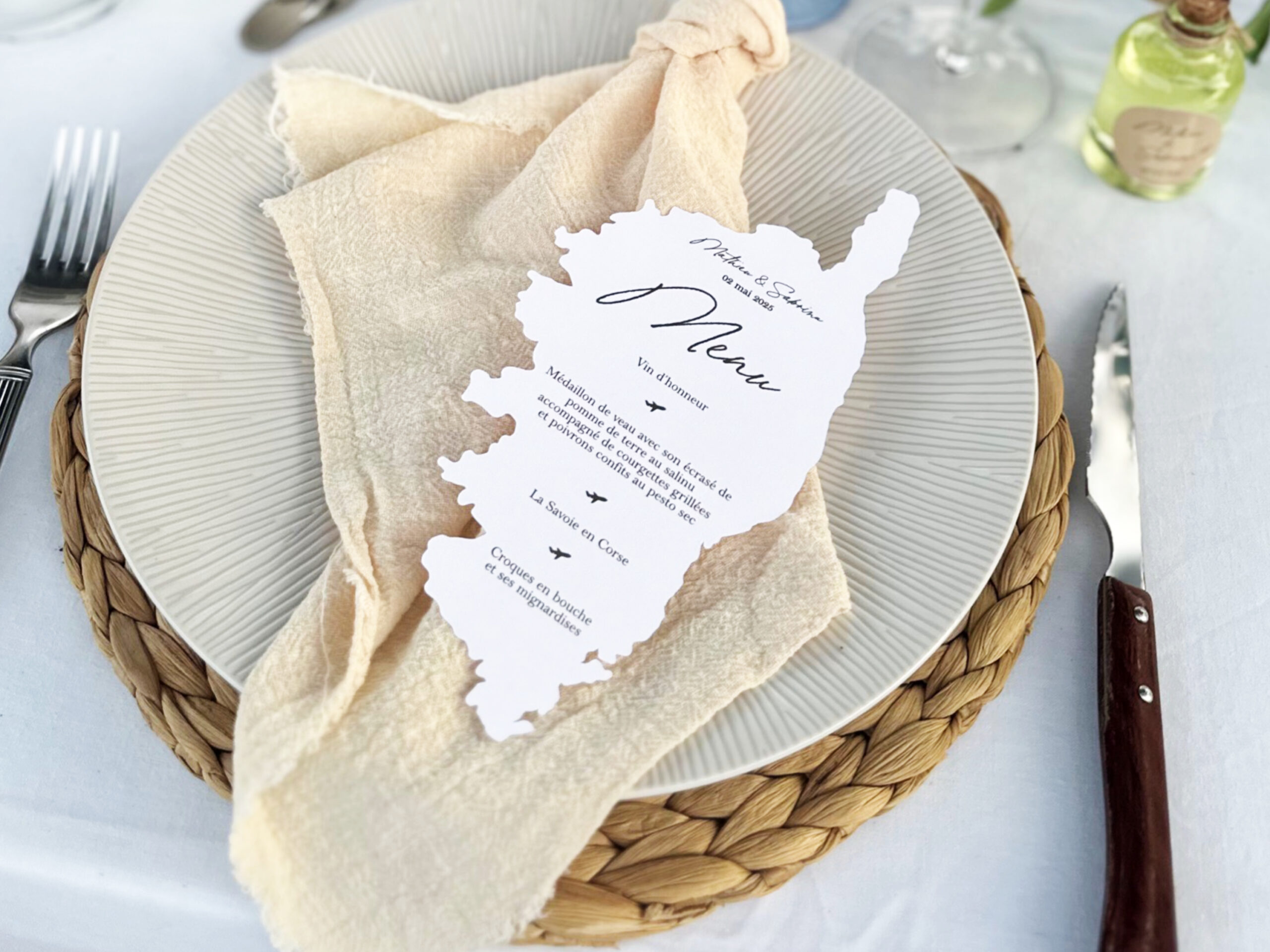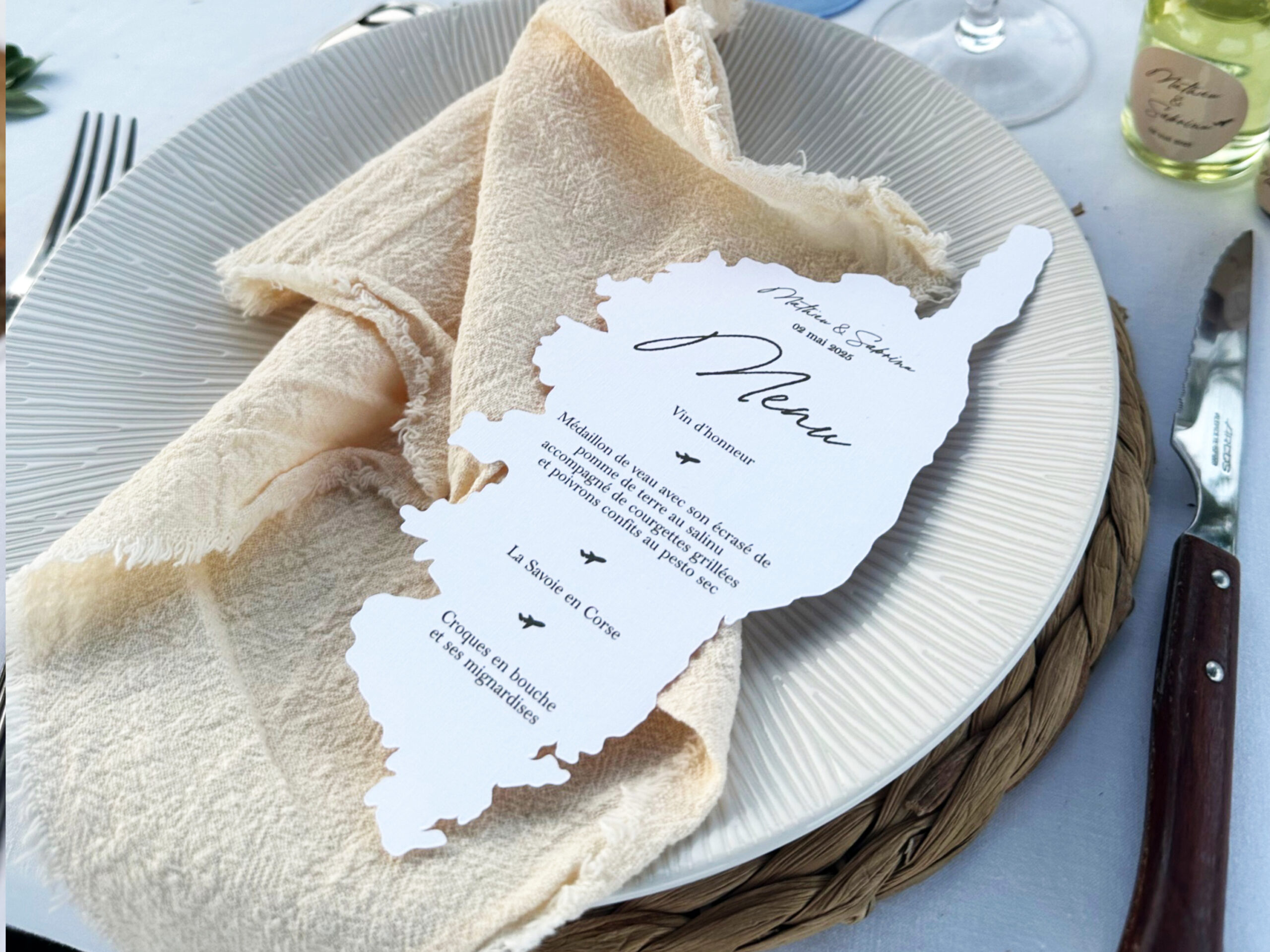 - Texte entièrement personnalisable (menu, prénoms, date et possibilité d’ajouter un logo)